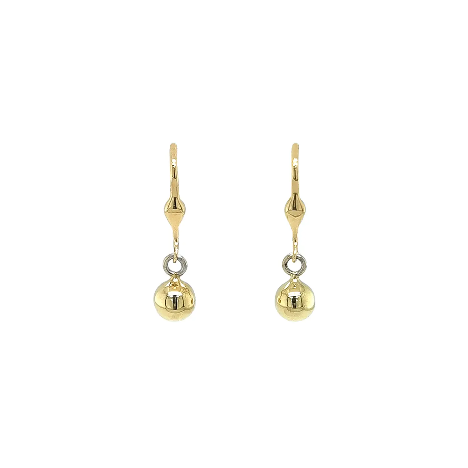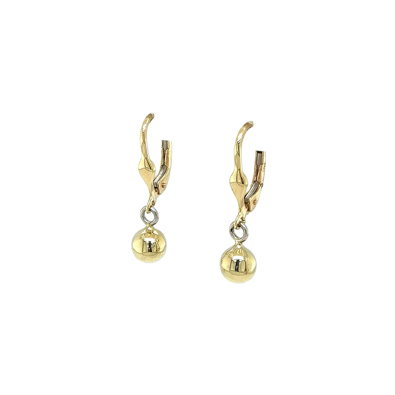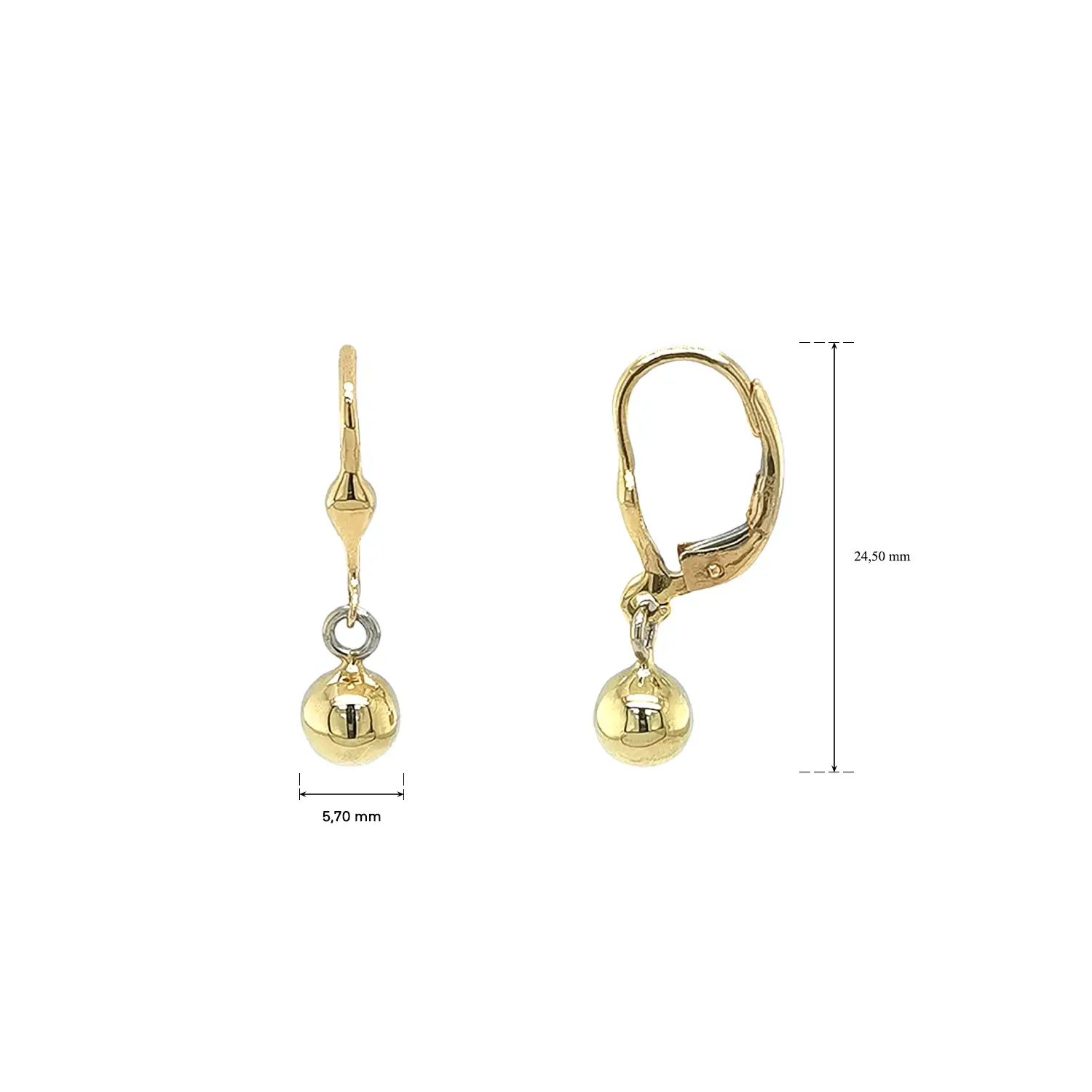 These gold dangling earrings with a delicate bead stand out for their lightness, movement, and timeless elegance. The polished beads create subtle reflections that illuminate the face, while the secure lever-back closure ensures comfortable and reliable wear throughout the day.