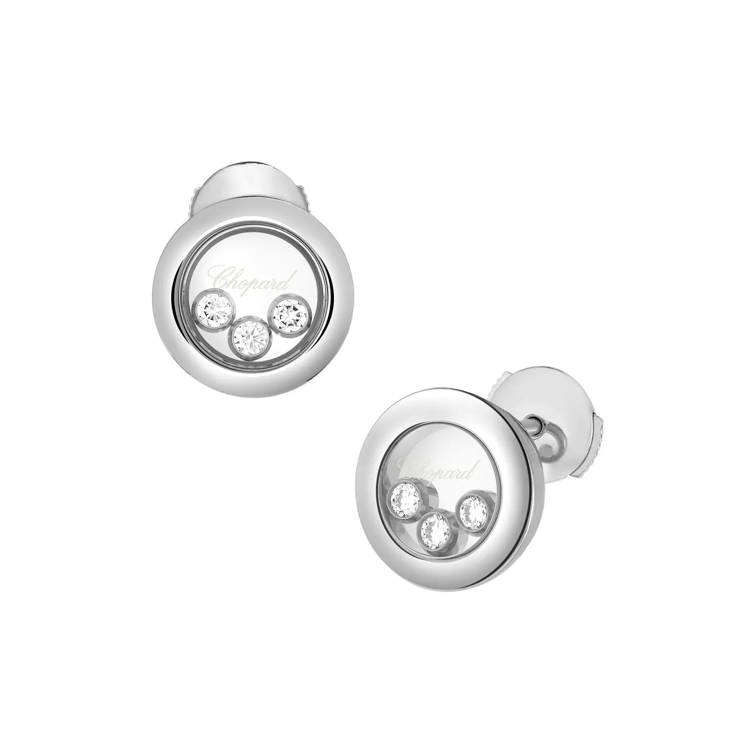 The Chopard Happy Diamonds Icons 83A018-1001 earrings perfectly capture the playful elegance and lightness that define this iconic collection. Crafted from 18k ethical white gold, they feature freely moving brilliant-cut diamonds with a total weight of approximately 0.30 ct, gracefully dancing between two sapphire crystals — a symbol of joy and freedom.