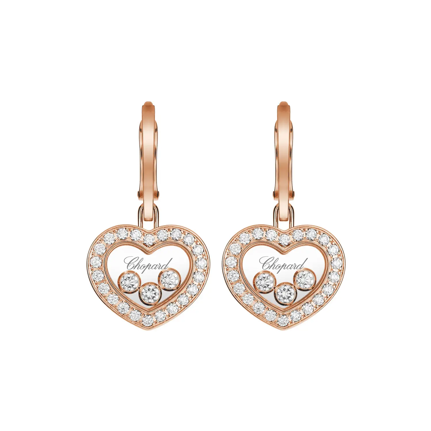 These enchanting earrings from the Happy Diamonds Icons collection embody freedom and joy through Chopard’s iconic floating diamonds between two sapphire crystals. Every movement of the wearer brings the jewels to life, creating a mesmerizing play of light and motion. Crafted in 18 k rose gold and set with approximately 0.70 ct of diamonds, they strike a perfect balance between delicacy, lightness, and feminine grace.
