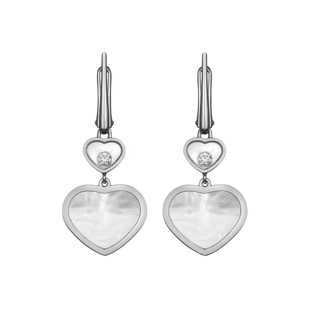 Chopard Happy Hearts 837482-1310 are drop earrings that blend the playful heart motif with timeless elegance. Crafted in 18kt white gold (750/1000) with a polished finish and the signature heart motif, their striking design brightens both festive outfits and everyday style, pairing easily with other Chopard jewels.