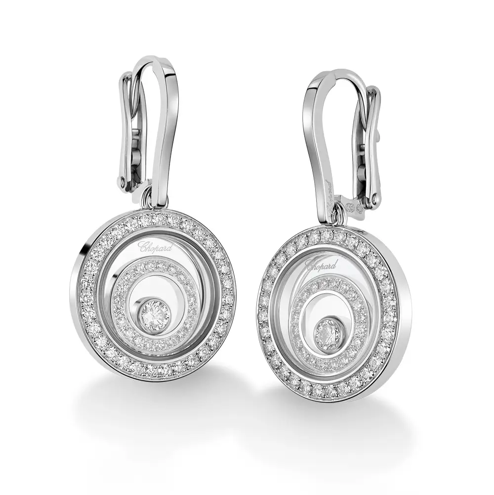 Chopard Happy Spirit 838230-1001 are drop earrings that blend the sophistication of the iconic collection with timeless elegance. Crafted in 18kt white gold (750/1000) with a polished finish, their striking design feels noble yet modern—ideal for ceremonial moments and as a radiant accent to everyday looks.