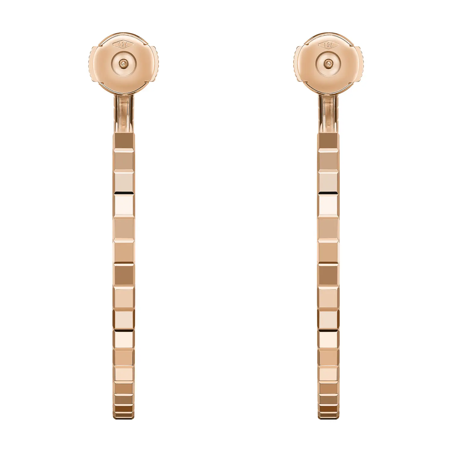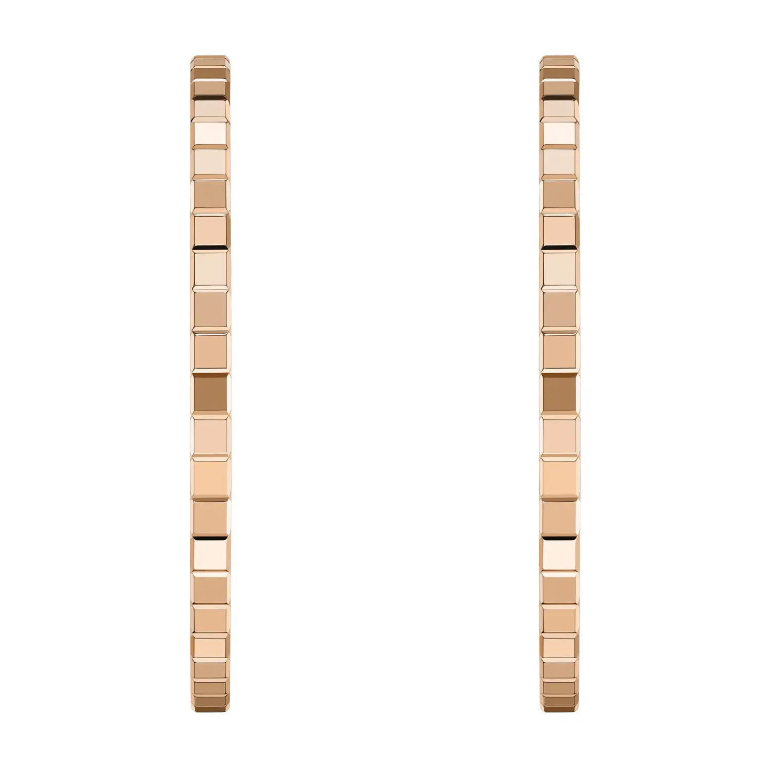 The Chopard Ice Cube Earrings 837702-5007 embody a masterful blend of minimalist elegance and luxurious craftsmanship. These hoop earrings are crafted from 18 kt rose gold (750/1000) with a polished finish, whose warm tones suggest subtlety and charm, while the signature Ice Cube design evokes modern purity and refined geometry.
