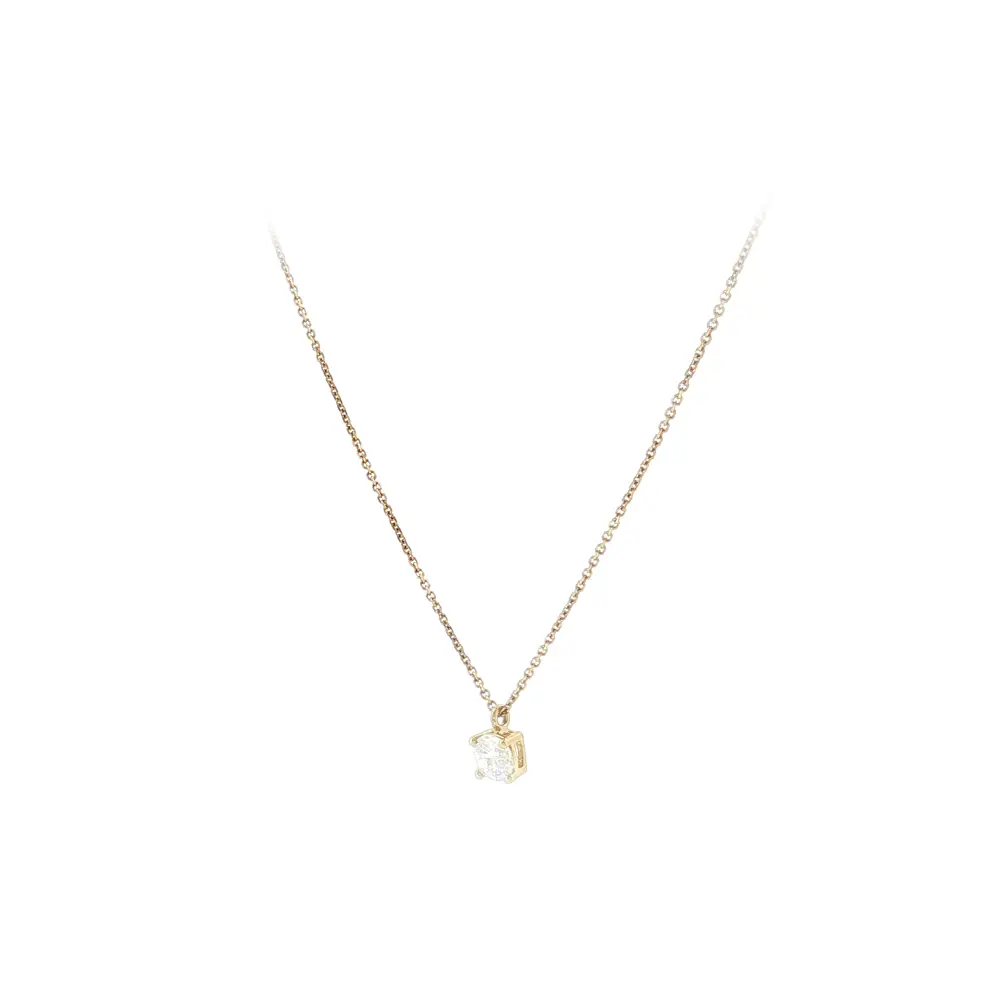 The gold necklace with a solitaire zircon stands out with its minimalist design and delicate sparkle that beautifully complements any outfit. A single precisely set stone gives the piece a timeless elegance and refined look.