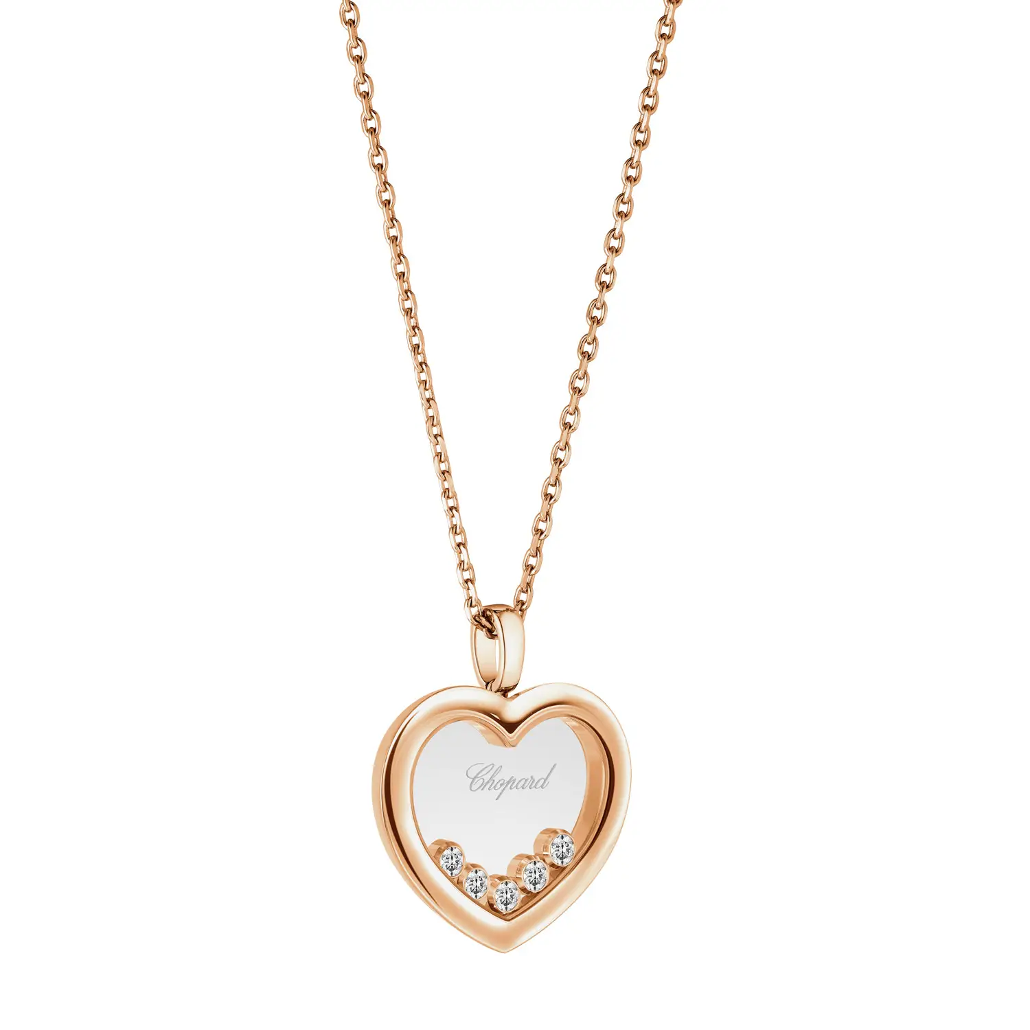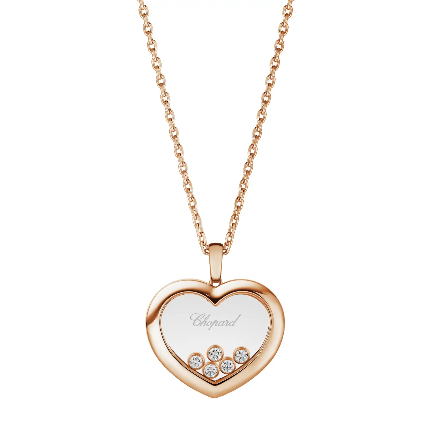 The Chopard Happy Diamonds Pendant 79A039-5001 is a timeless jewel that masterfully blends romantic symbolism with elegant premium precision. This iconic piece is crafted from 18 kt rose gold (750/1000) with a polished finish, radiating sophisticated femininity and effortless wearability.