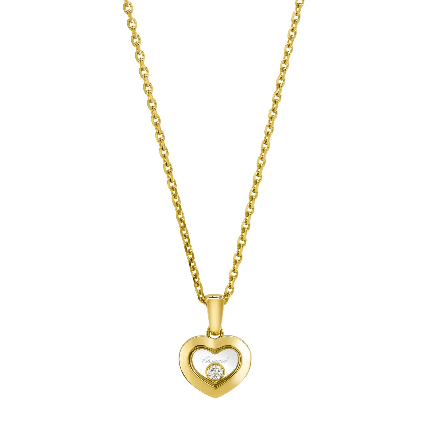 The Chopard Happy Diamonds Pendant 79A054-0001 is a jewel that combines the delicacy of a romantic motif with luxurious craftsmanship and timeless style. It is crafted from 18 kt yellow gold (750/1000) with a finely polished finish that creates a radiant and elegant impression.