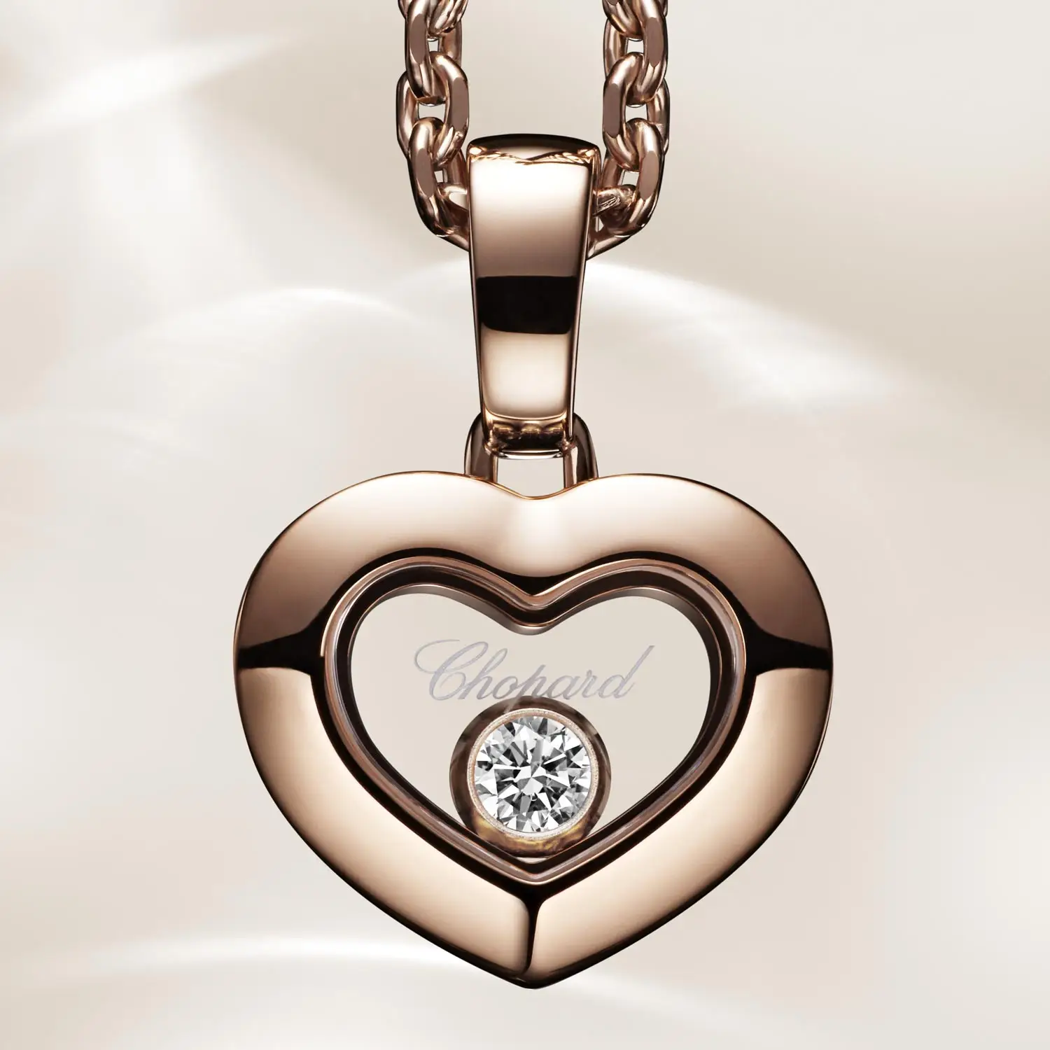 The Chopard Happy Diamonds Pendant 79A054-5001 radiates an elegant feminine silhouette, symbolizing the union of love, emotion, and minimalist aesthetics. It is meticulously crafted from 18 kt rose gold (750/1000) with a smooth polished finish, giving the pendant a timeless and luxurious appeal.