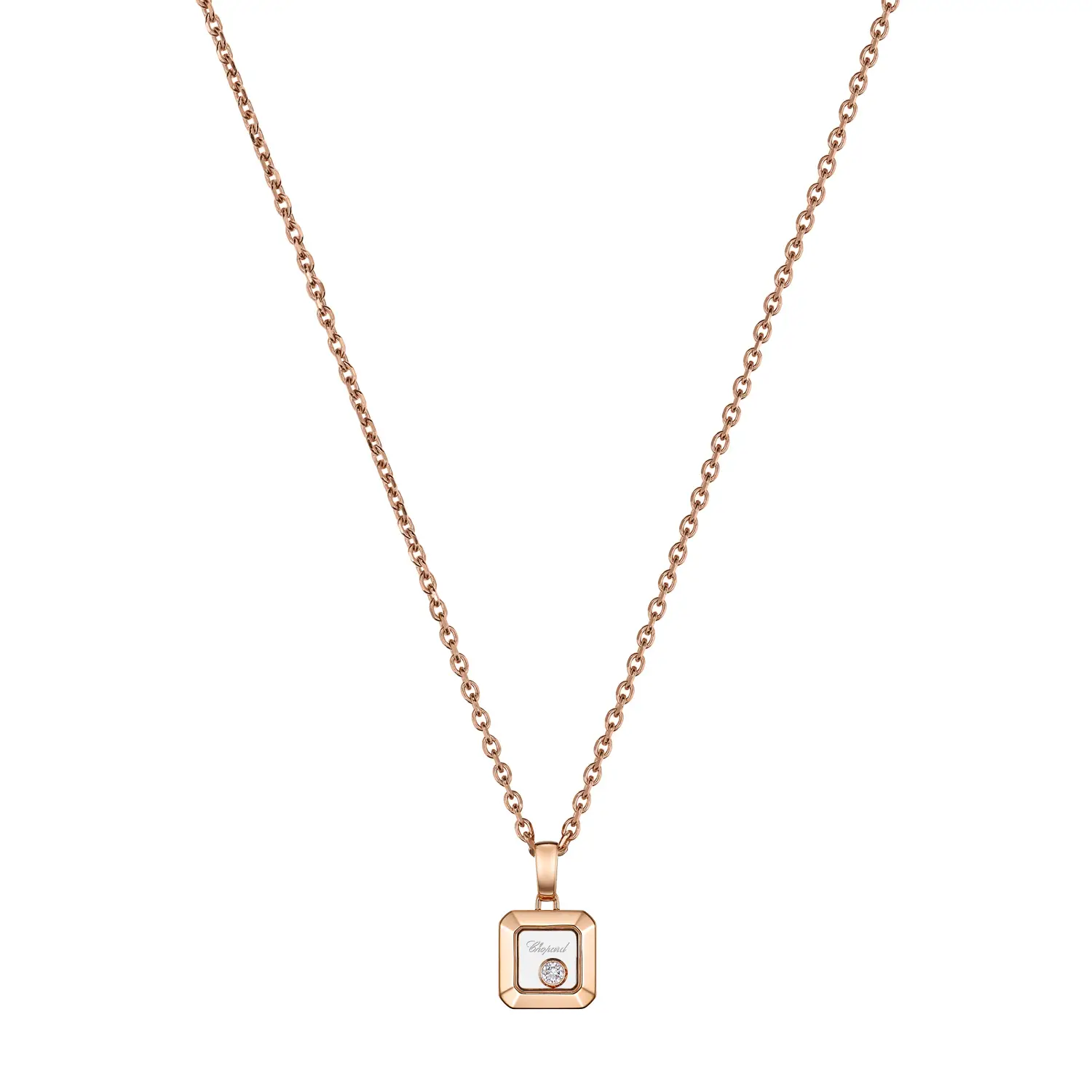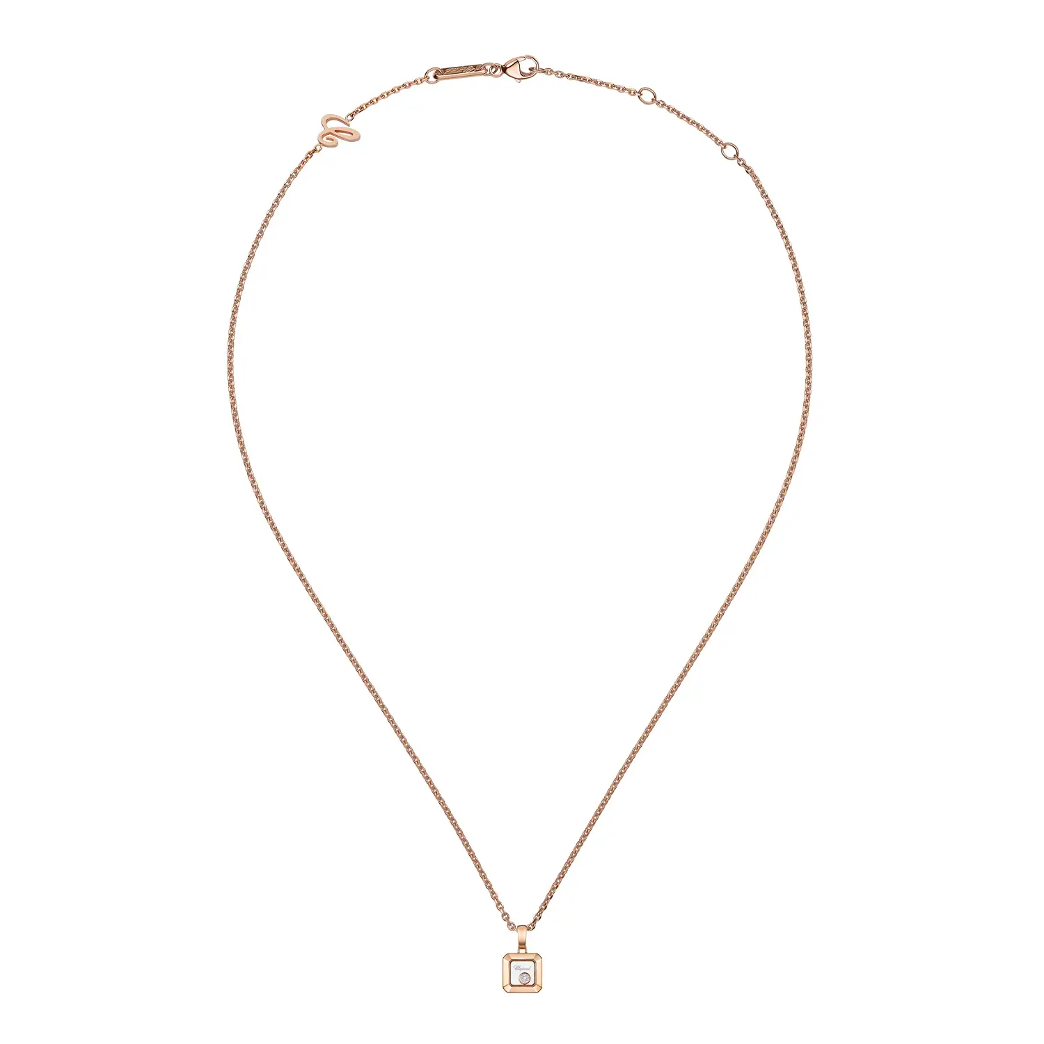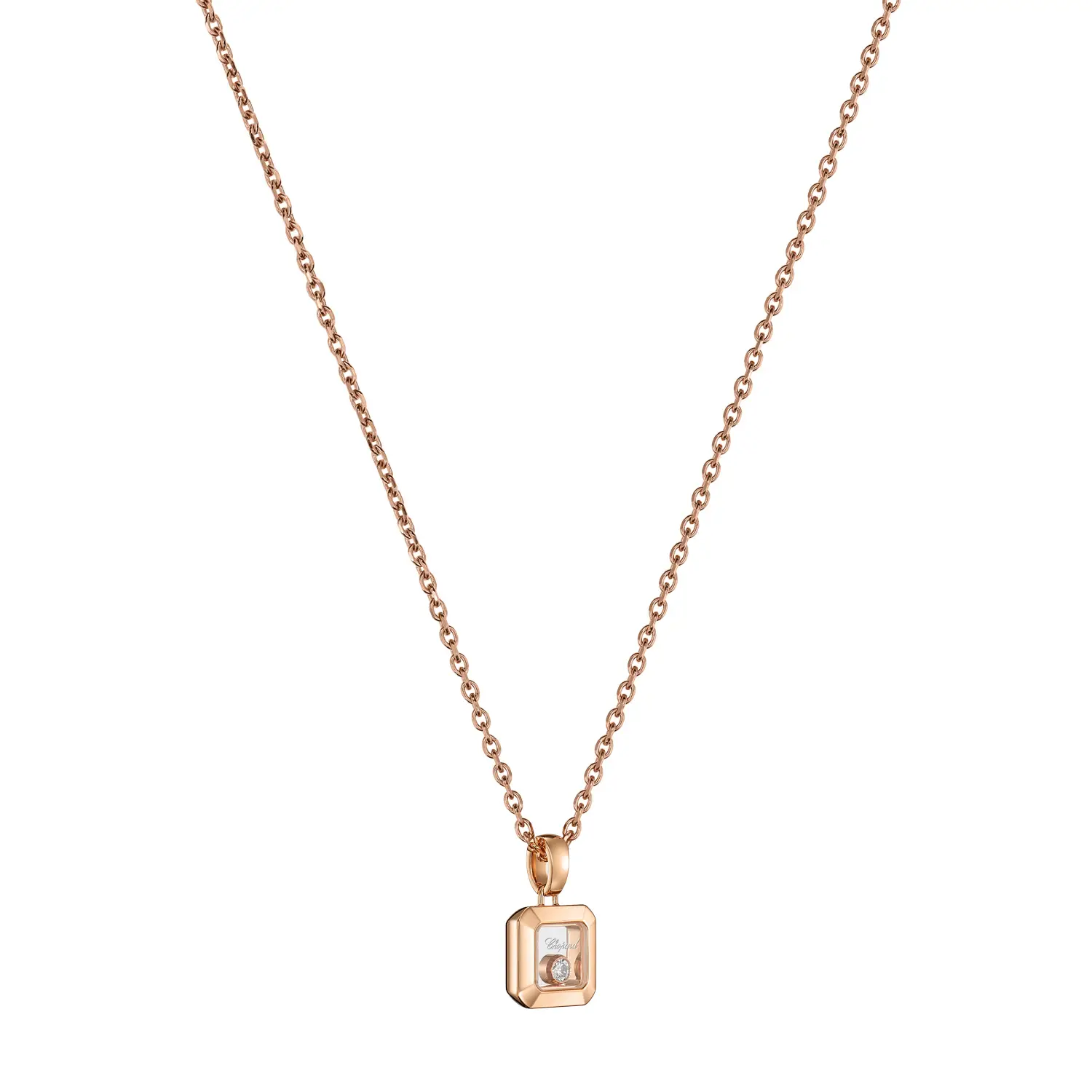 The Chopard Happy Diamonds Pendant 79A114-5001 is an elegant jewel whose heart motif embodies charm, joy, and a personal expression of style. It is crafted from 18 kt rose gold (750/1000) with a polished finish that lends the piece a luxurious and timeless appearance.