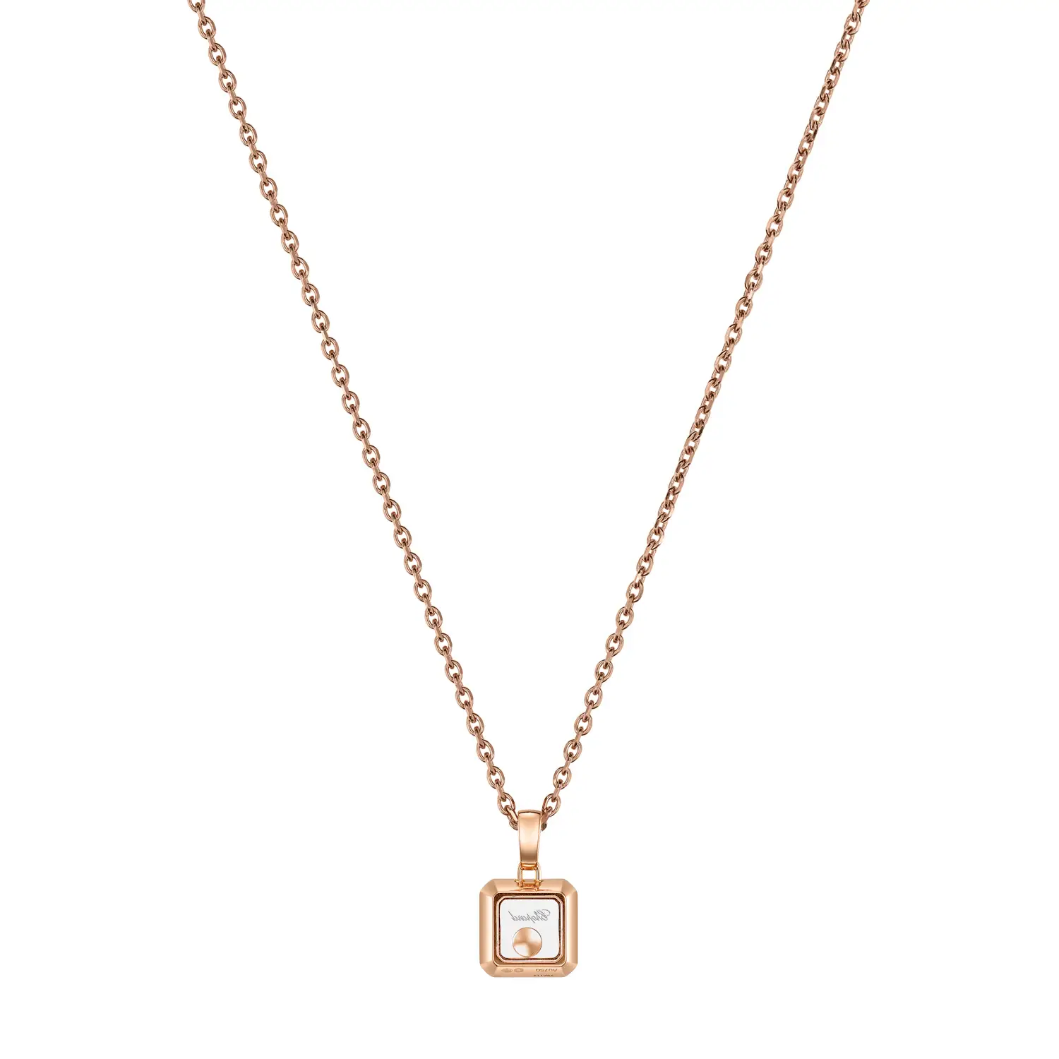 This pendant is presented on a 42 cm steel chain, which elegantly complements the piece while ensuring comfort and style when worn. Once again, Chopard demonstrates its mastery in combining minimalist design with exceptional materials.