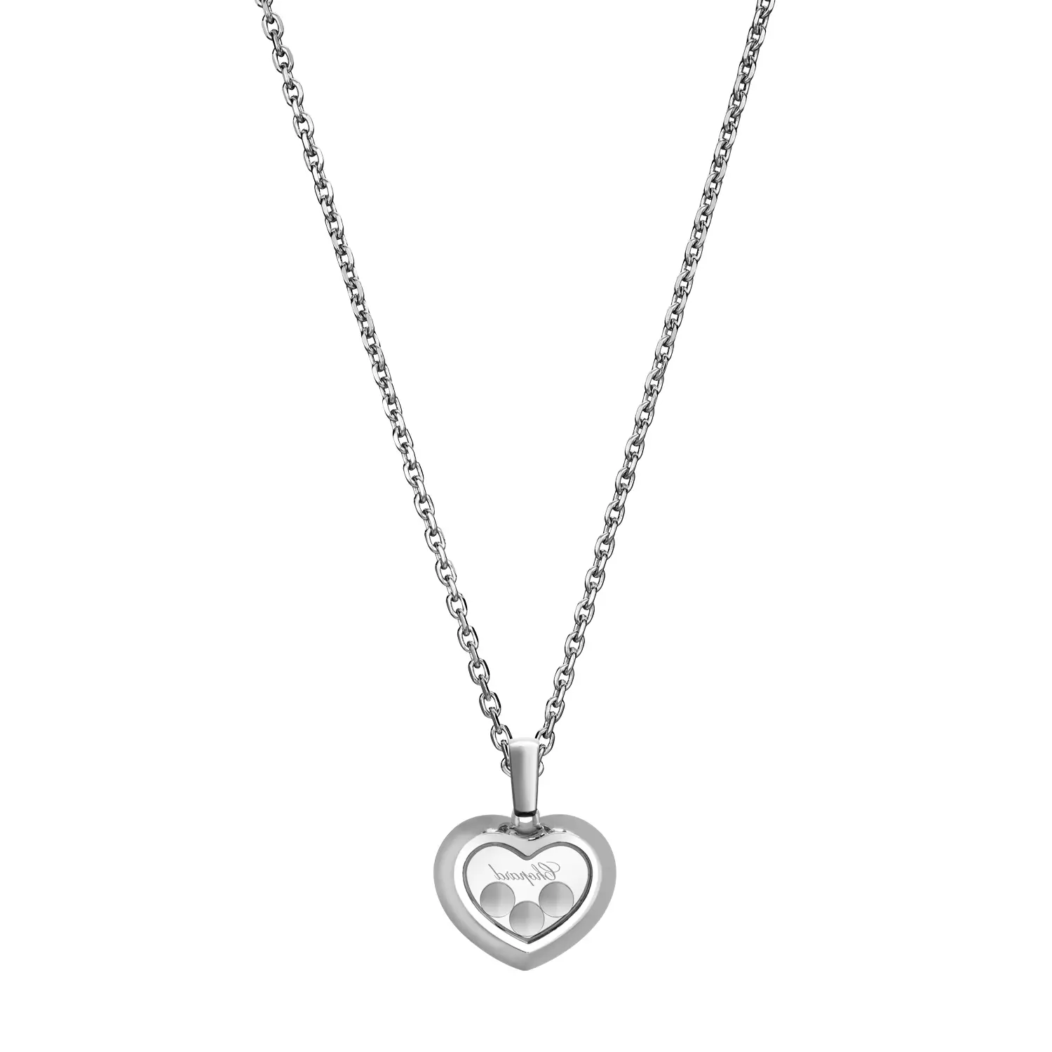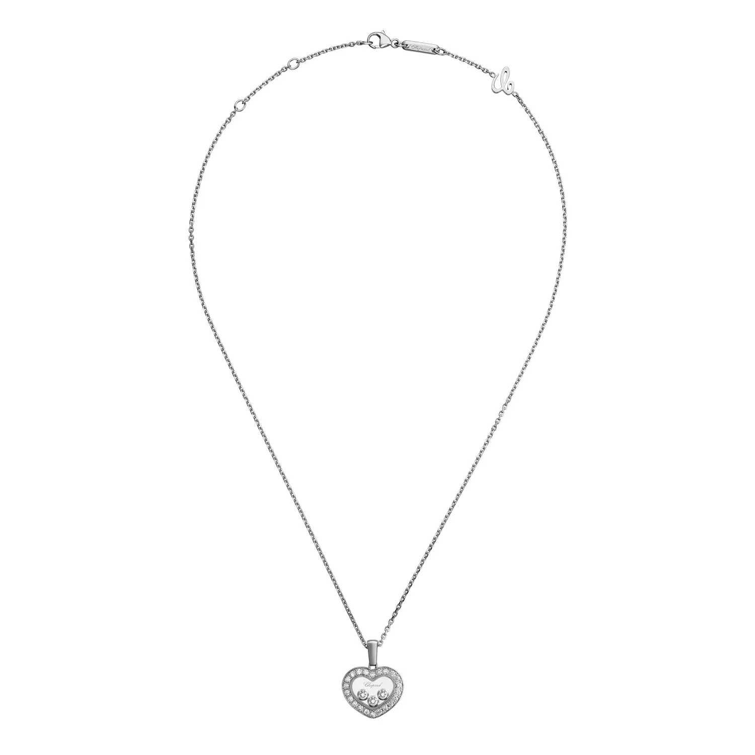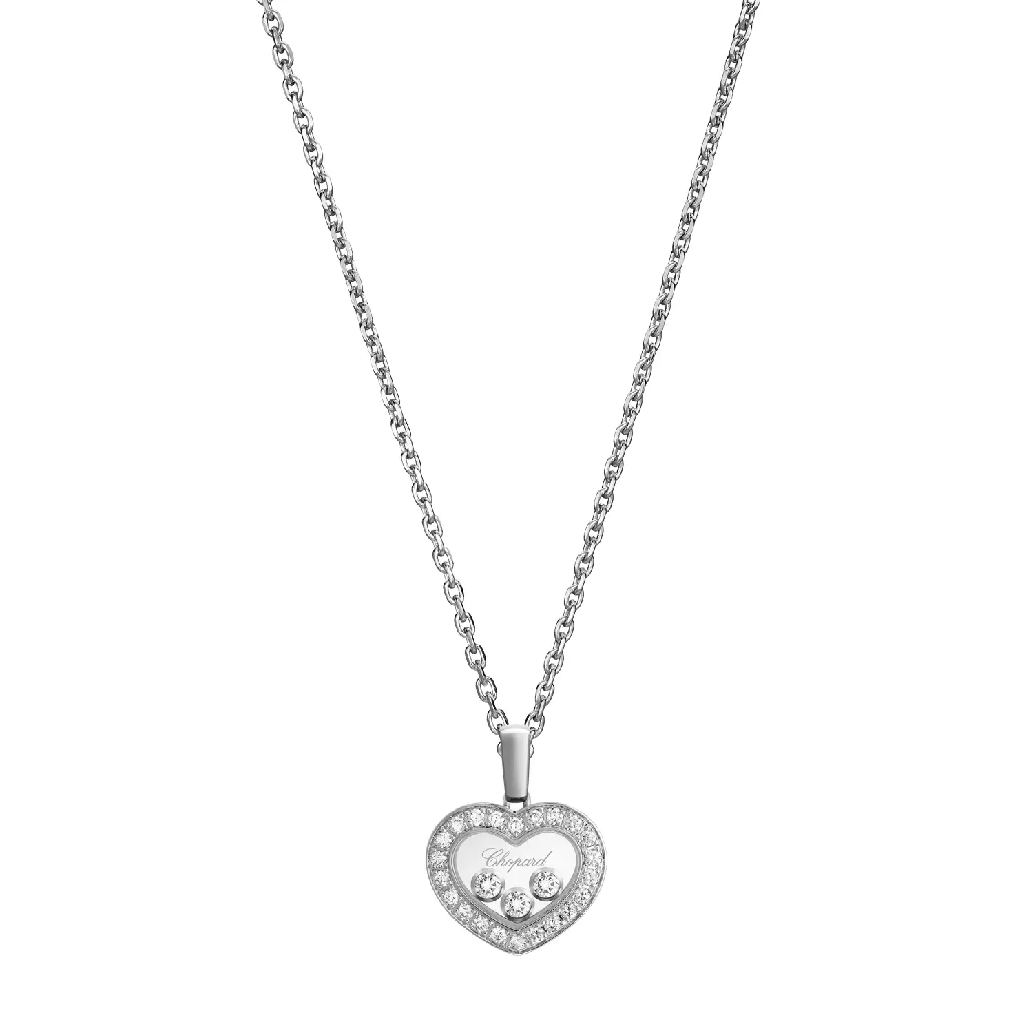 This exquisite pendant from the Happy Diamonds Icons collection embodies playful luxury and timeless elegance. Crafted in 18 k white gold and set with diamonds totaling approximately 0.35 ct, it radiates a delicate brilliance and refined sophistication. At its heart lie freely moving diamonds encased between two sapphire crystals – Chopard’s signature symbol of joy, freedom, and light.