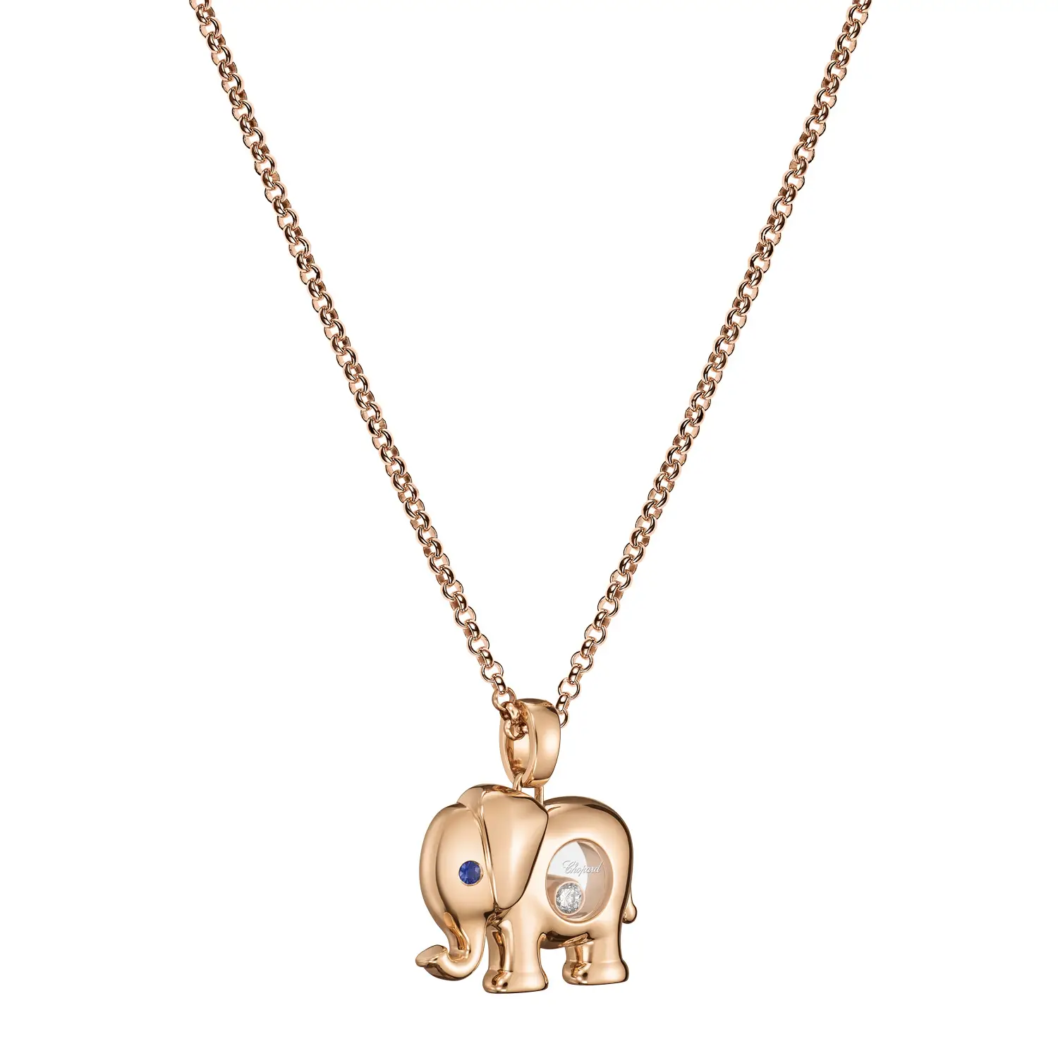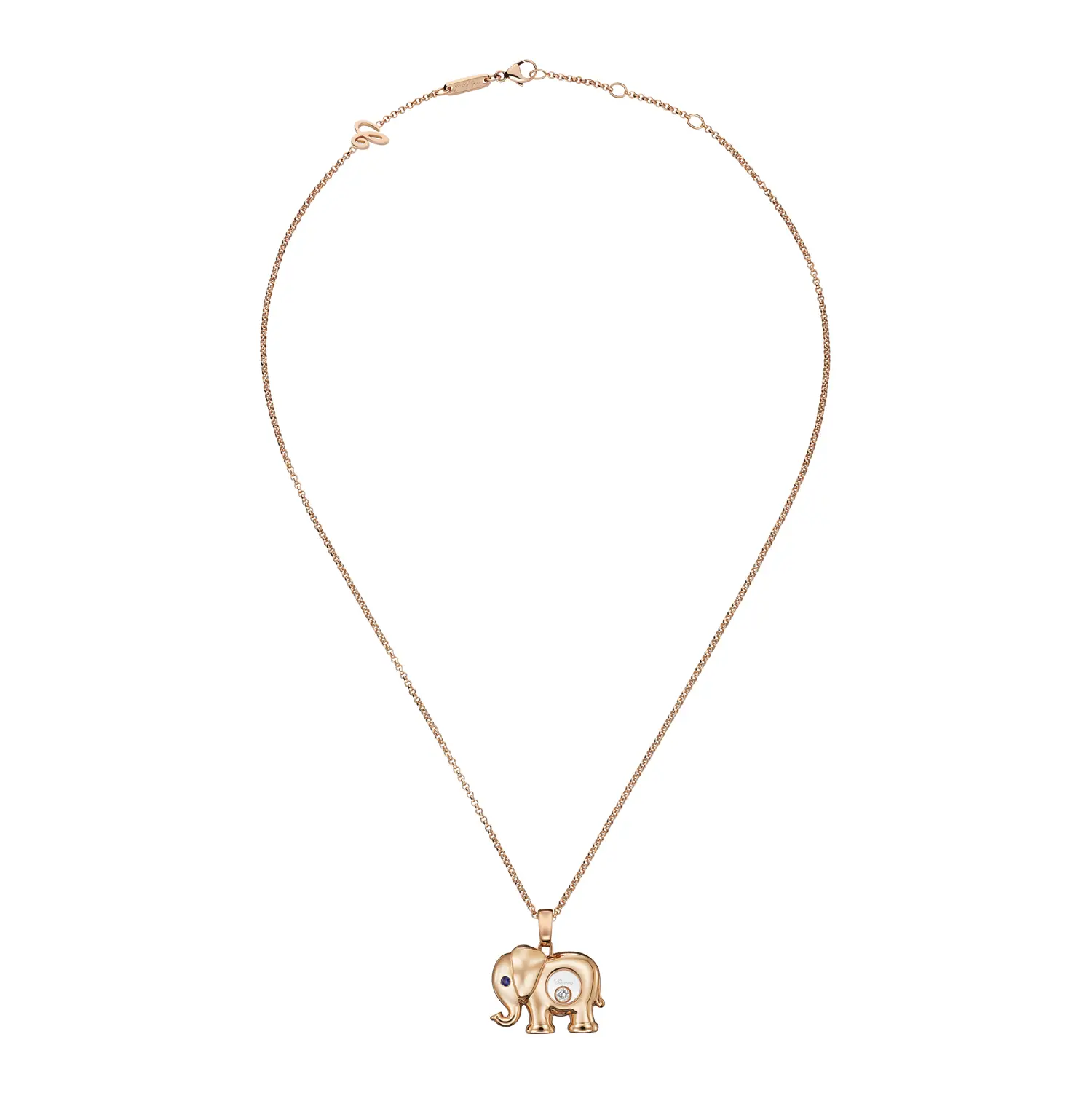 Chopard Happy Diamonds Elephant Pendant 79A189-5001 offers a whimsical touch of artistry combined with luxurious craftsmanship. Styled as a graceful elephant motif, it’s meticulously crafted from 18kt rose gold (750/1000) with a polished finish that exudes subtle elegance.