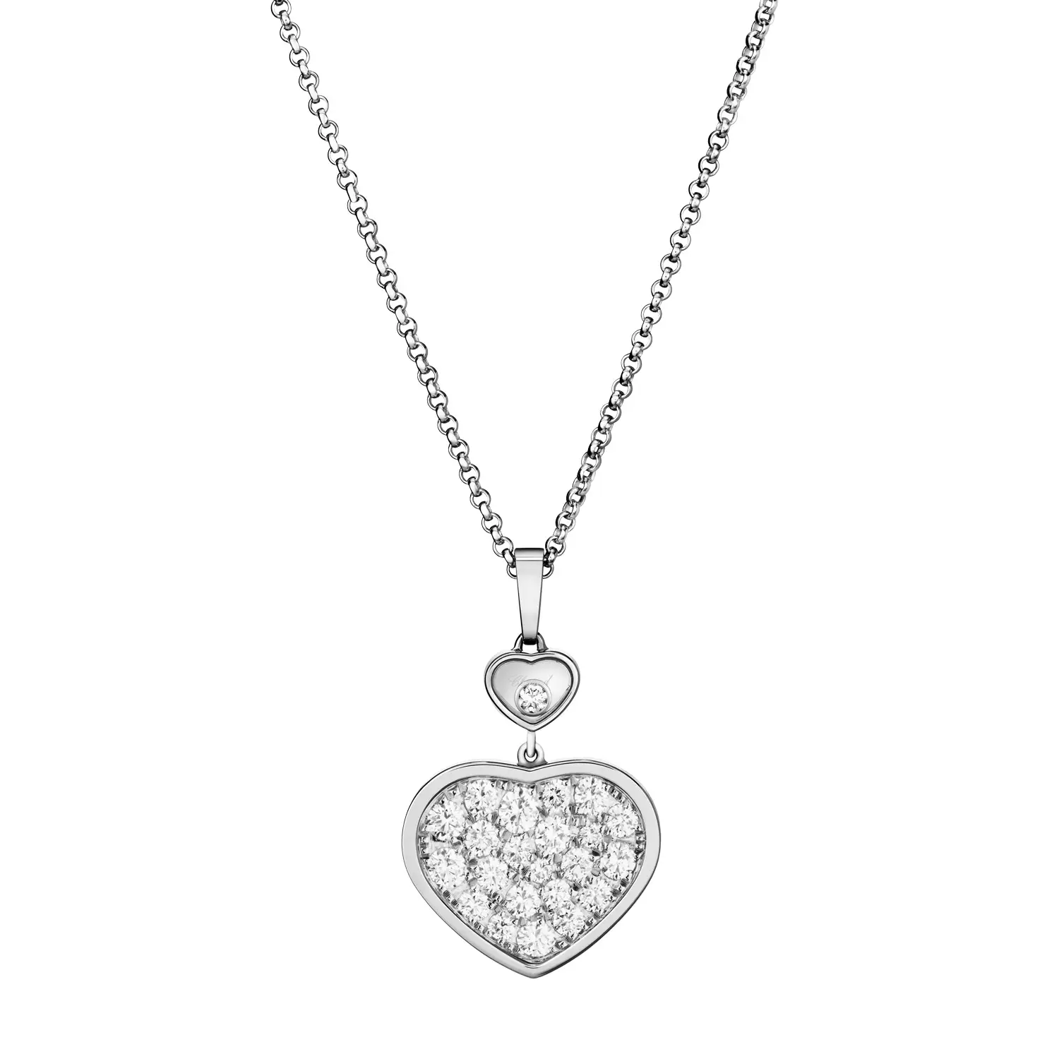 Suspended from a 45 cm chain, it rests gracefully near the neckline, enhancing the pendant’s delicate and feminine charm. Every sparkle reveals Chopard’s exquisite craftsmanship and diamond artistry, making it a true symbol of eternal love and refined luxury.