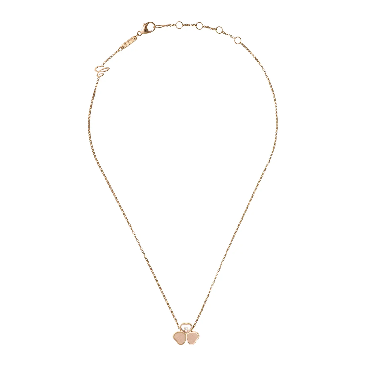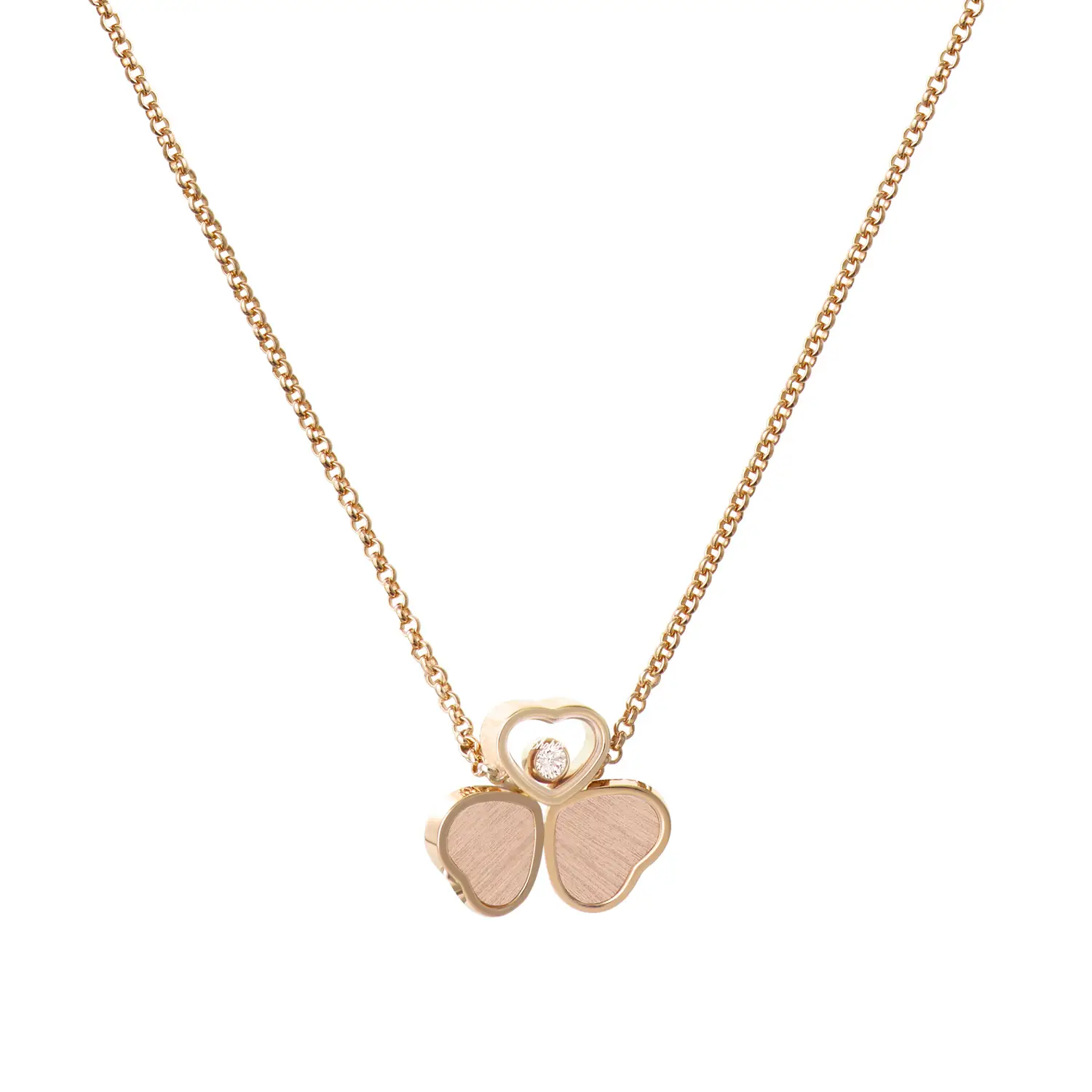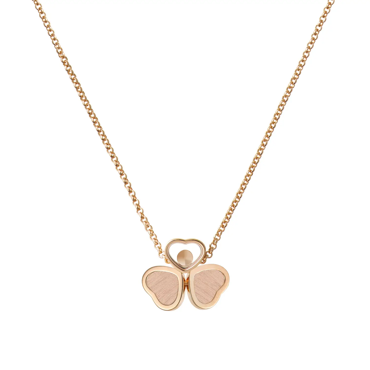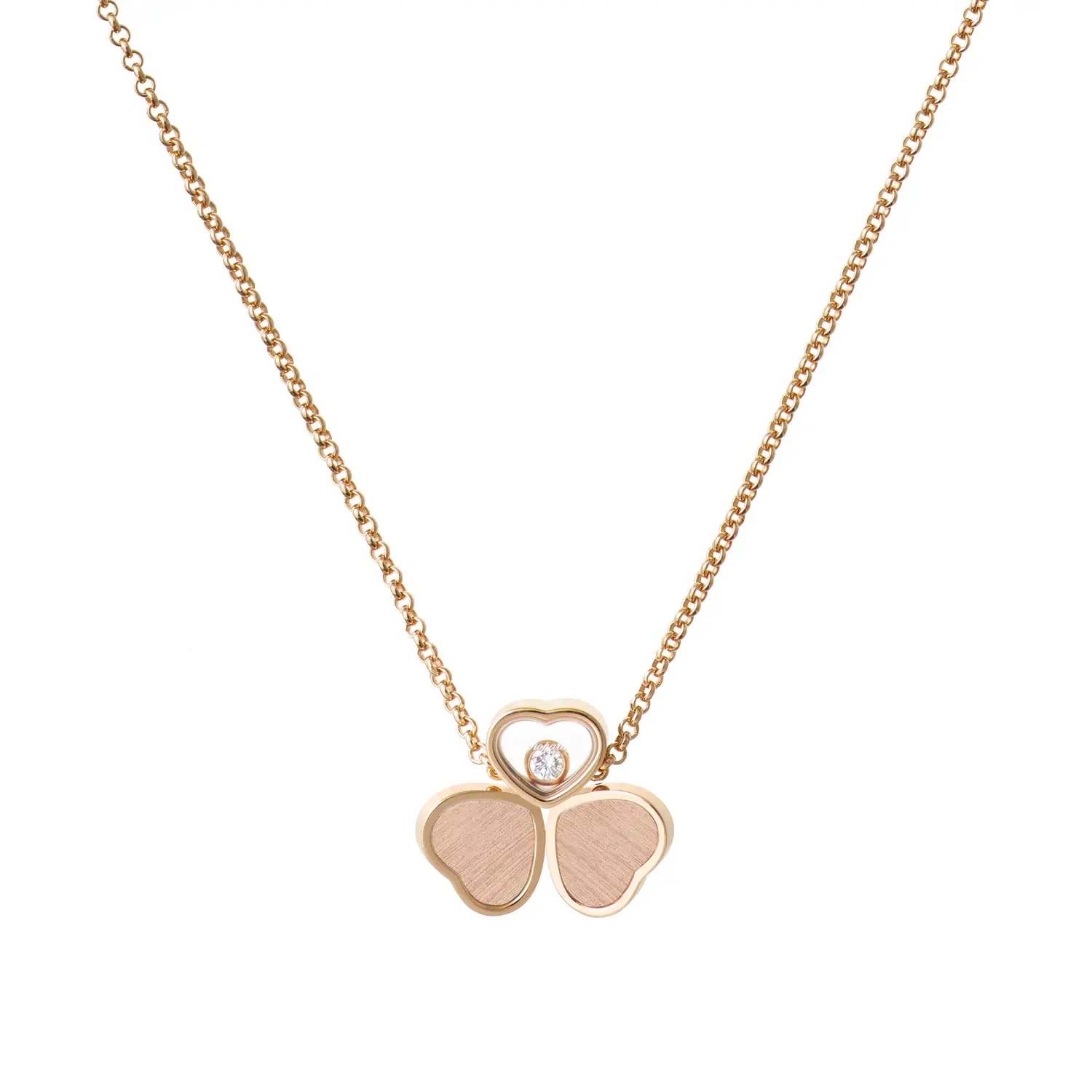 Chopard Happy Hearts 81A083-5711 captures pure elegance and feminine charm in perfect harmony of design and material. This luxury pendant, bearing the distinctive signature of the Happy Hearts icon, is crafted from 18-karat rose gold (750/1000) with a polished finish that enhances the gentle pink tone of the metal and adds a touch of sophisticated elegance to the piece.