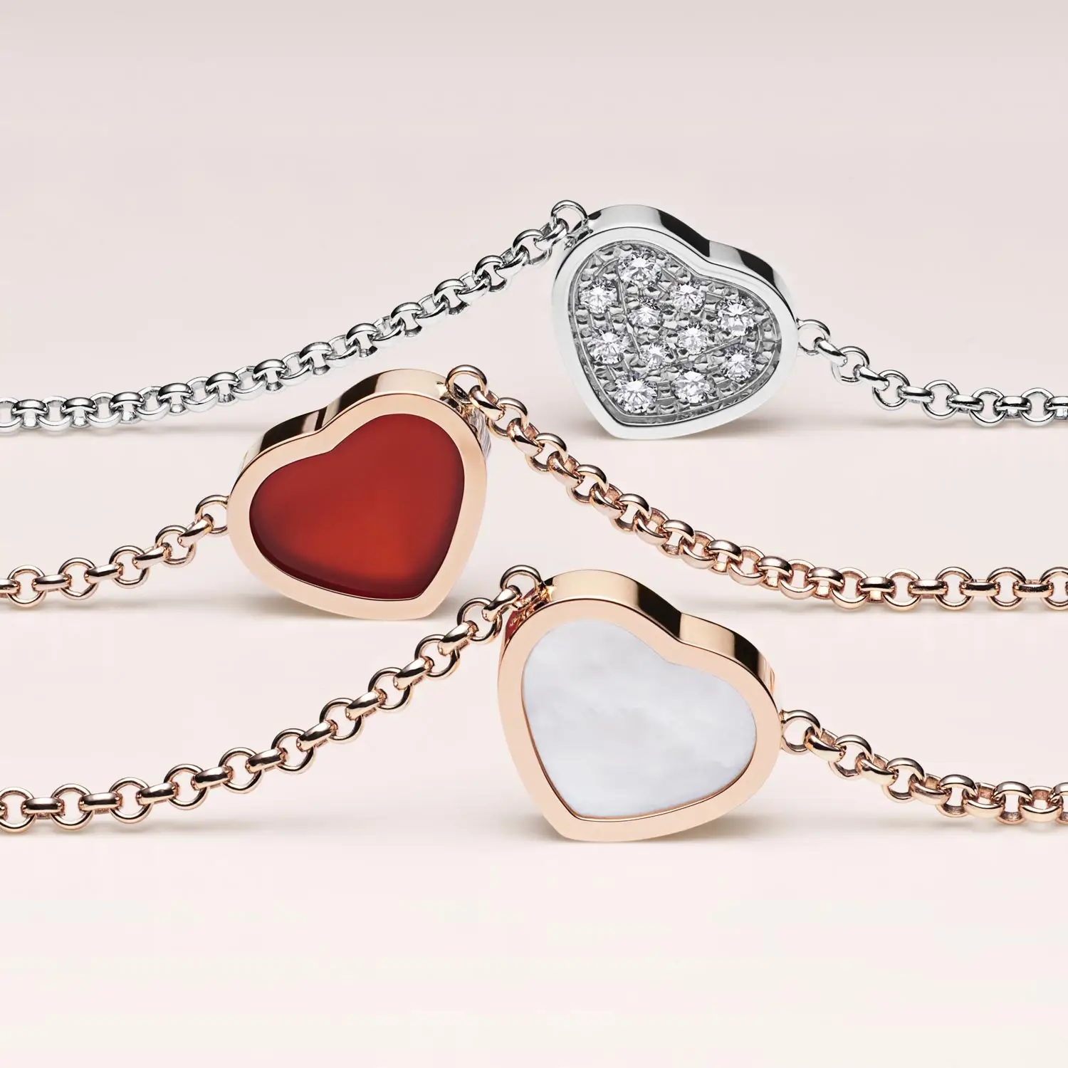 The Happy Hearts collection is one of Chopard’s most iconic jewellery lines. It unites the symbolism of the heart – the universal sign of love – with the playful spirit of the legendary Happy Diamonds collection. Hearts in various sizes and colours are arranged in harmonious compositions that are tender yet sophisticated.