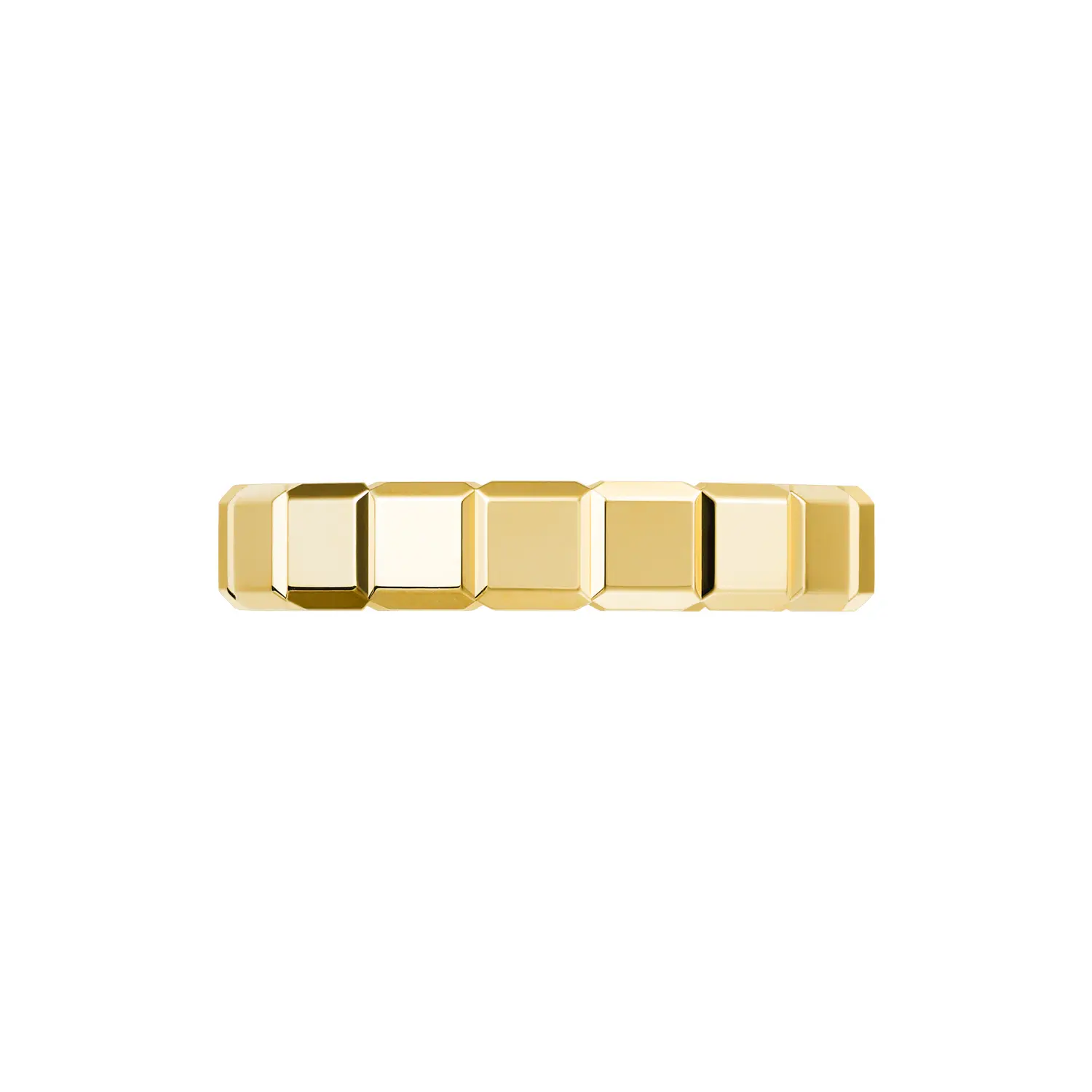 The Chopard Ice Cube Pure ring in 18k ethical yellow gold expresses a modern vision of elegance through precise geometry and minimalist style. Its iconic cube-inspired shape reflects light with perfect clarity, creating a soft golden shimmer. The flawlessly polished surfaces highlight the masterful goldsmith craftsmanship and refined character of the Ice Cube collection.