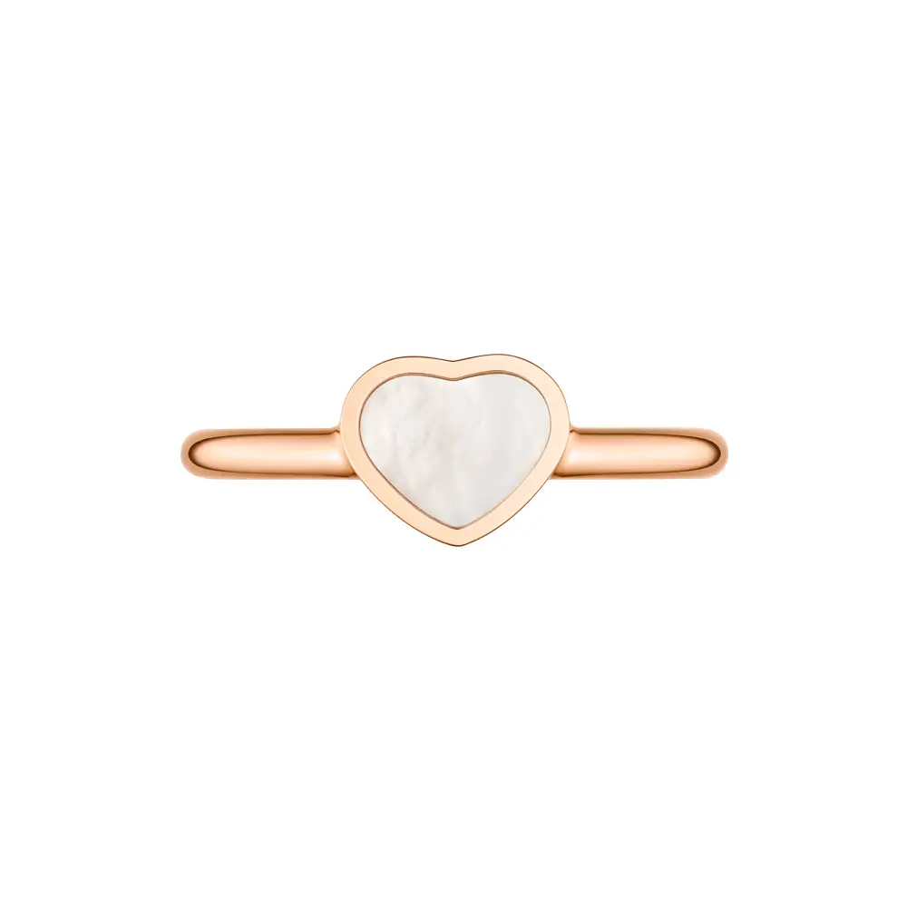 Chopard My Happy Hearts 82A086-5310 is a delicate ring that blends the line’s playful spirit with minimalist everyday elegance. Crafted in 18kt rose gold (750/1000) with a polished finish and the signature heart motif, it feels gentle, feminine, and timeless. It pairs easily with other Chopard jewels—from relaxed stacking to more formal sets.