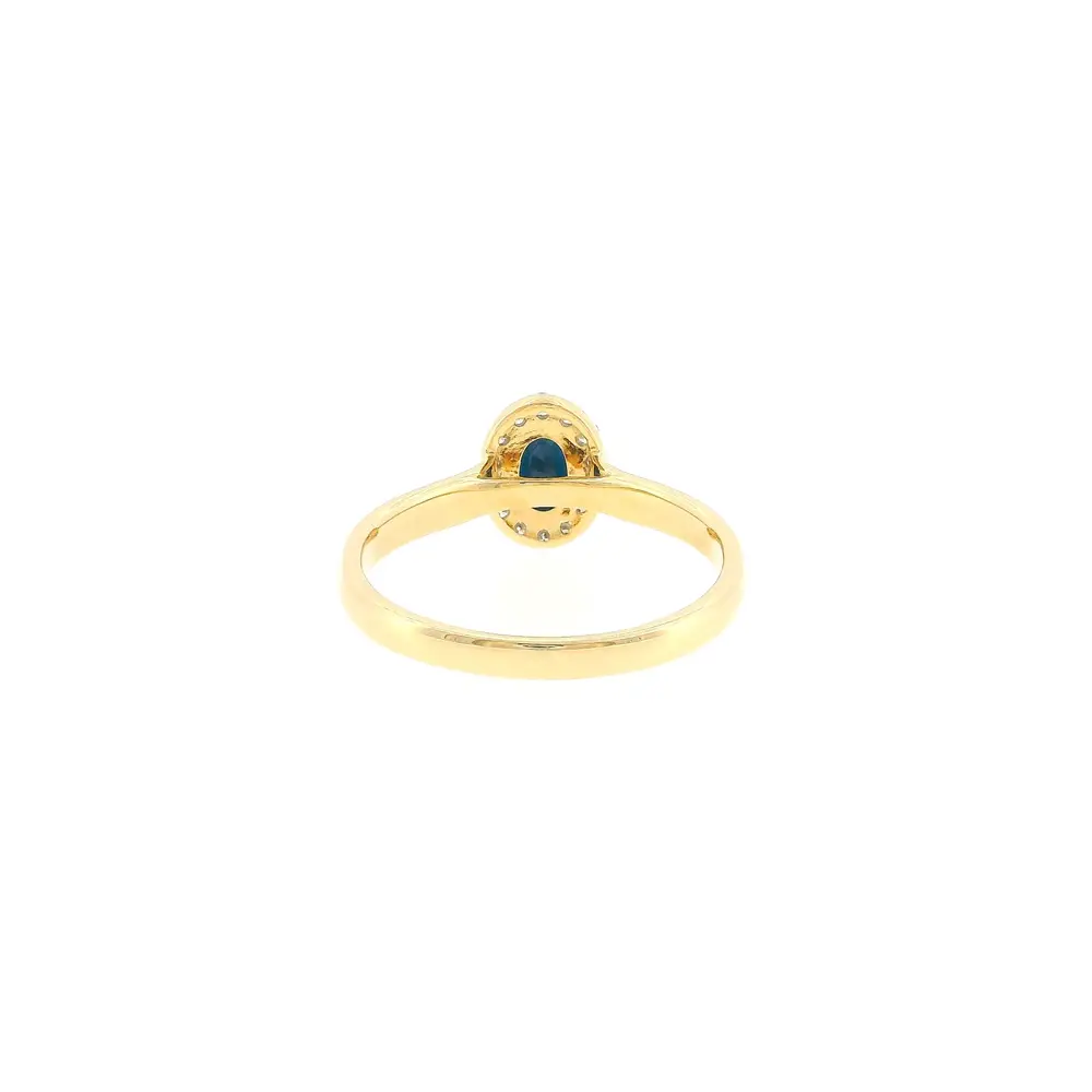 Gold ring with 0.50 ct sapphire in a diamond halo