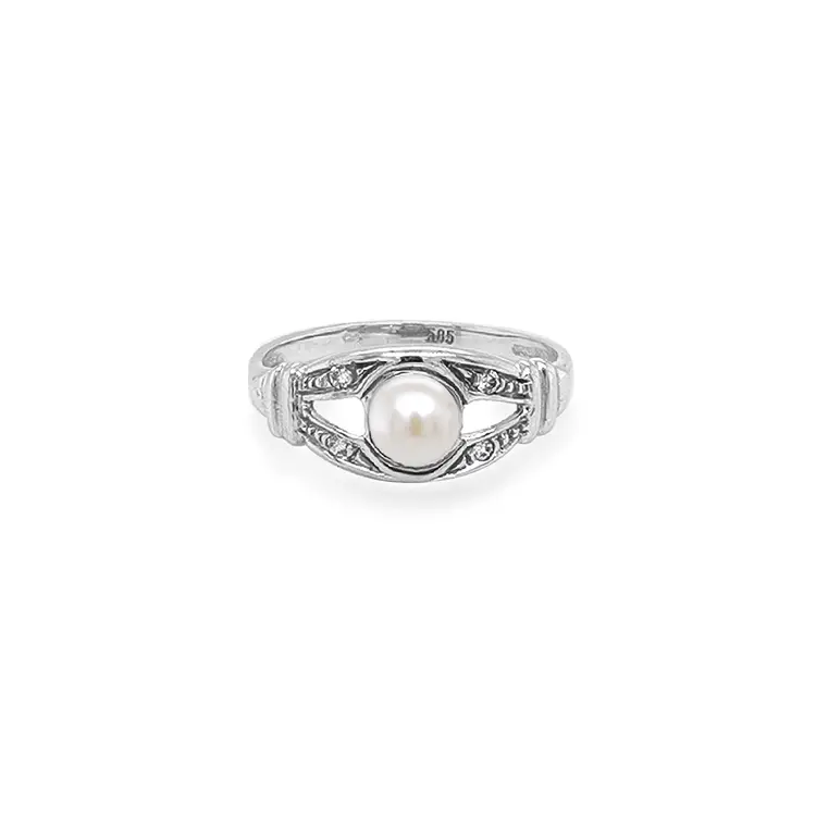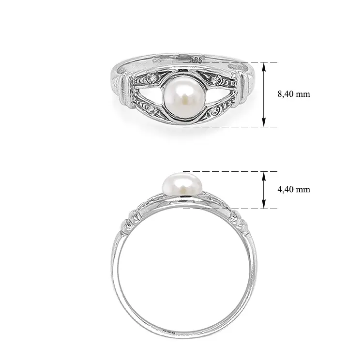 Gold Ring with Pearl and Zircones