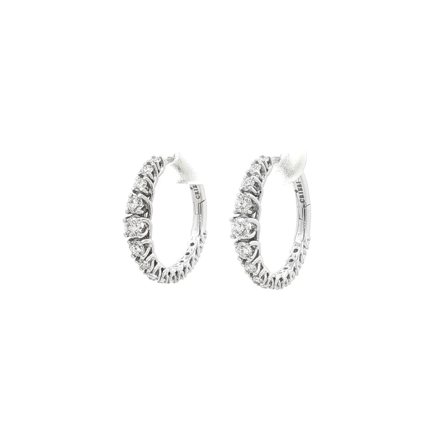 These refined hoop earrings from Crieri embody understated luxury and exceptional craftsmanship. Crafted in 18 kt white gold (750/1000) with a polished finish, they reflect light beautifully and maintain a sleek, modern silhouette. The hinge-clasp mechanism ensures both comfort and secure wear.