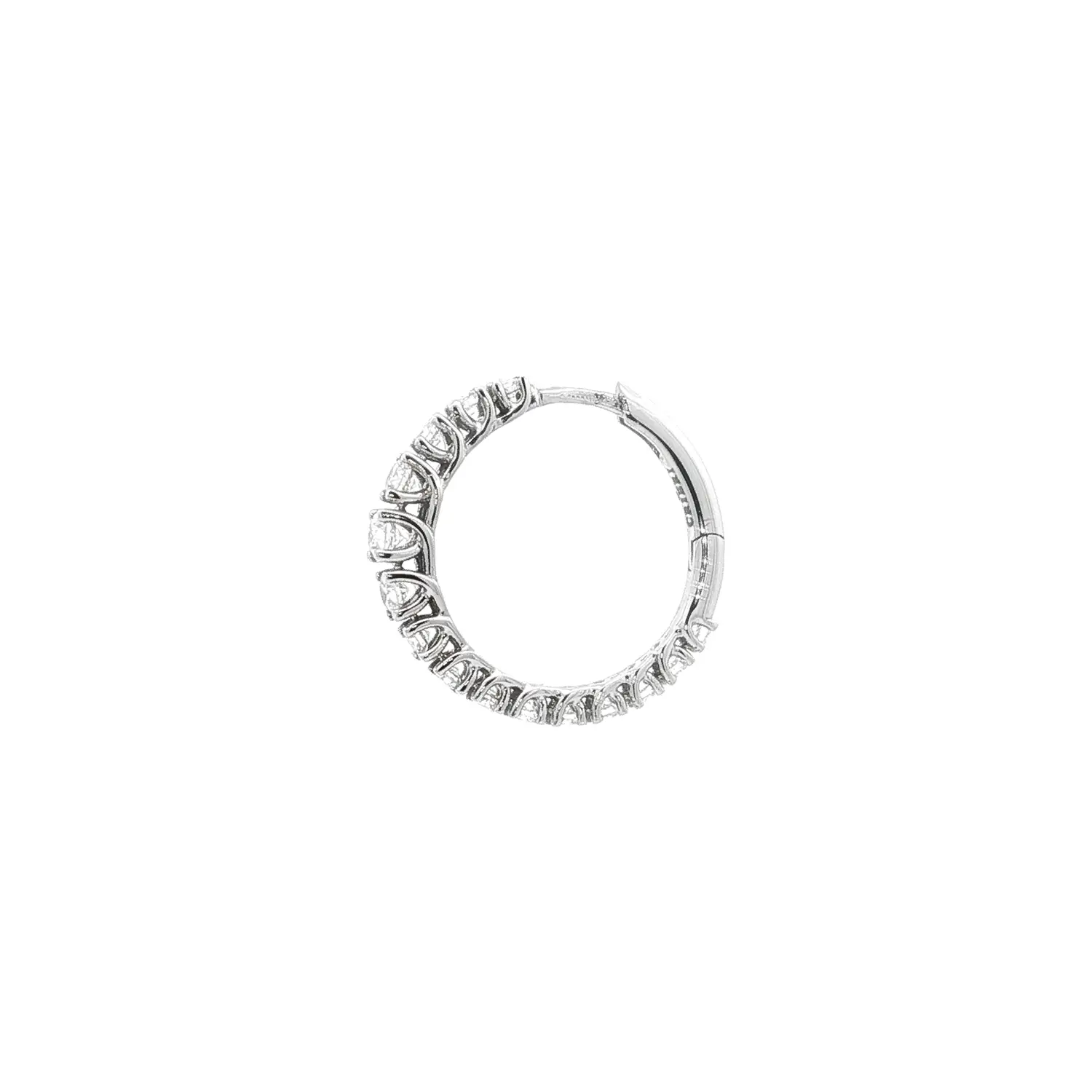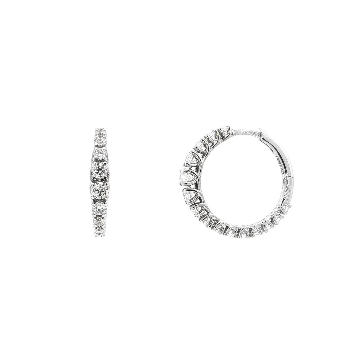 They feature 30 natural round-cut white diamonds, totaling 1.05 carats, graded G-H in colour and VS in clarity. Each diamond is hand-set to form a continuous shimmering row around the hoop, delivering a subtle yet distinct sparkle that moves with the wearer.