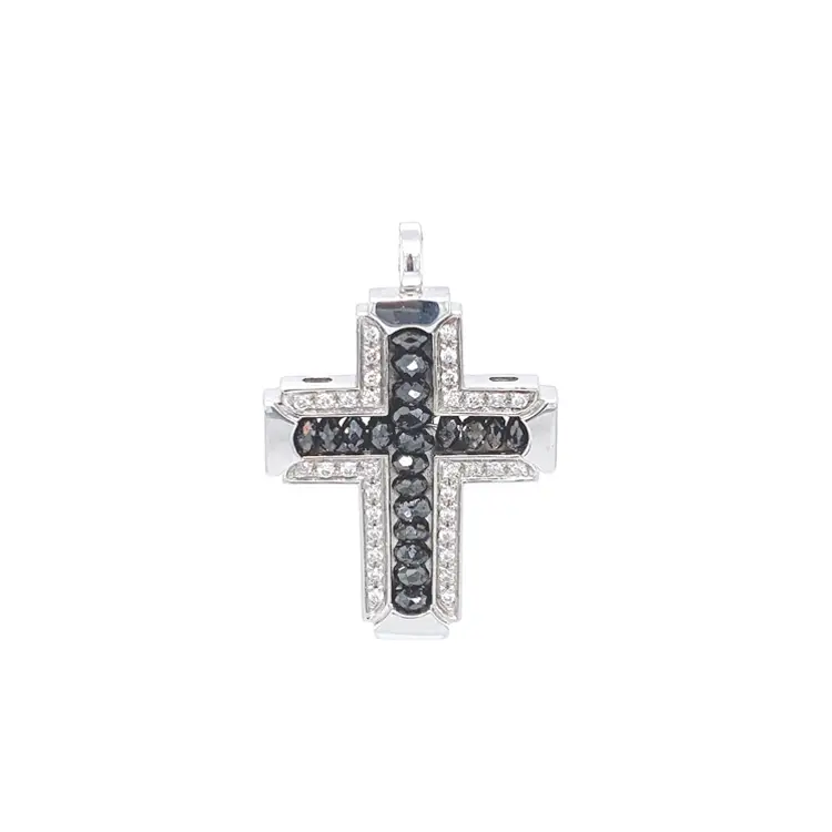 The Zancan Black Magic EC222B cross pendant is a symbol of strength, spiritual depth, and masterful Italian artistry. Crafted from 18 kt white gold (750/1000) with a polished finish, it embodies the perfect balance of light and darkness.