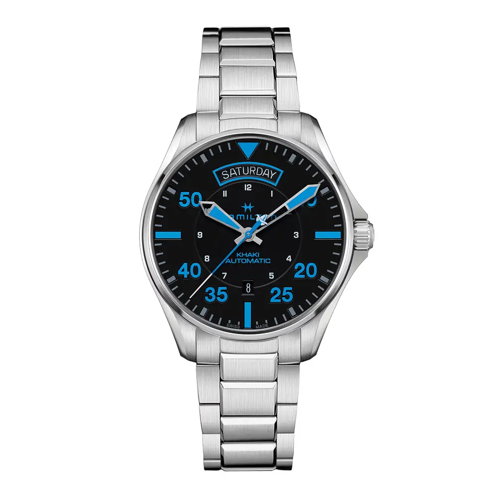 Khaki Aviation is Hamilton's collection that pays homage to the brand's aviation roots and its collaboration with pilots and the military. This line is inspired by 20th century navigation watches for pilots, but brings them to life in a modern, technically advanced design.