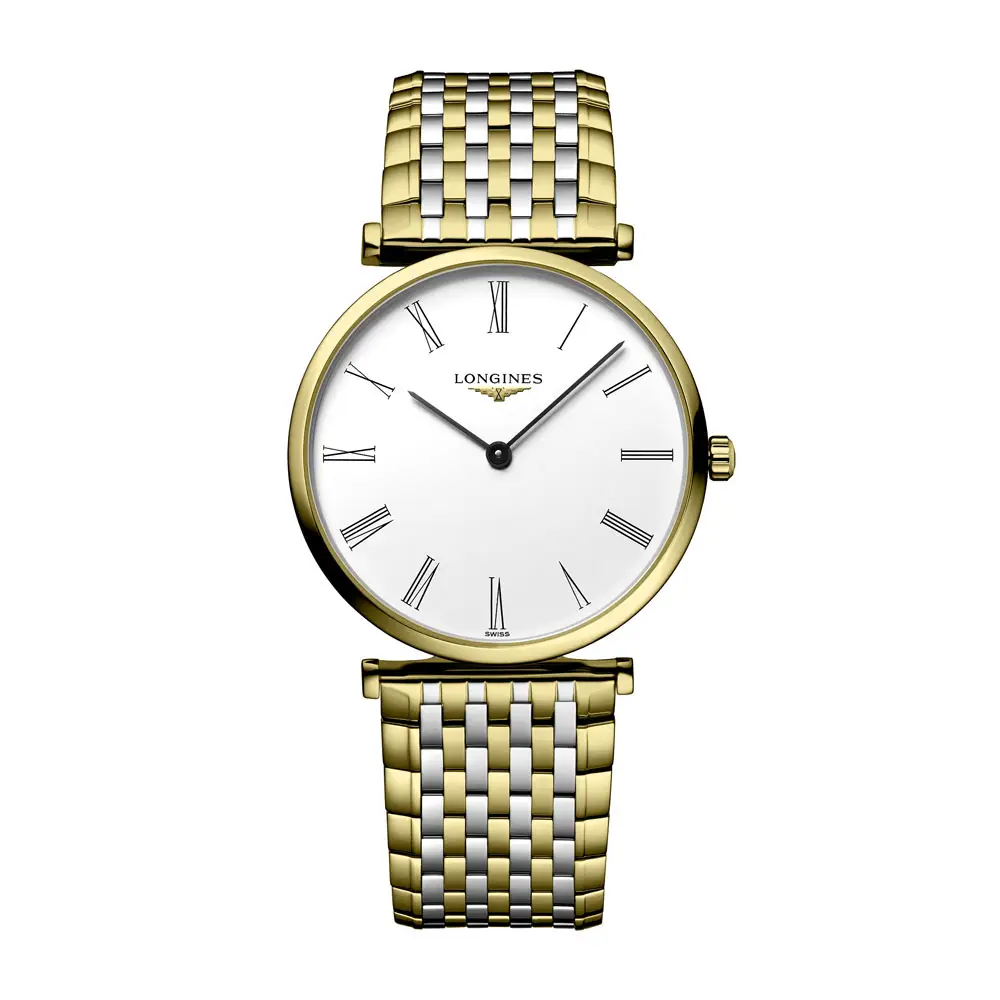 The Longines La Grande Classique L4.755.2.11.7 is a symbol of classical aesthetics with a touch of luxury. Its 36 mm stainless steel case with yellow PVD coating sits elegantly and harmoniously on the wrist. A scratch-resistant sapphire crystal and 3-bar water resistance add practicality for everyday wear.