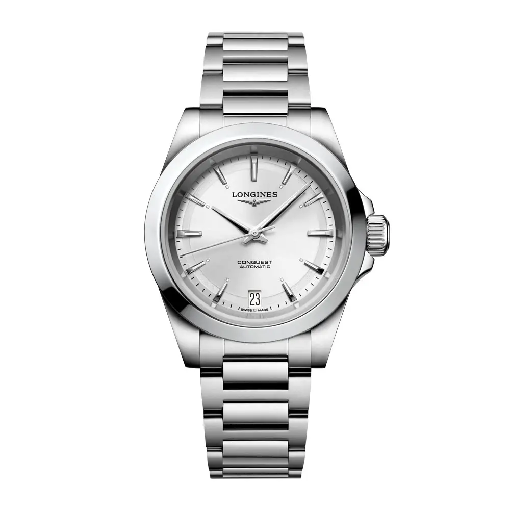 At its heart beats the automatic calibre L888 with a 72-hour power reserve, guaranteeing accuracy and dependable performance. Completing the design is a stainless steel bracelet with a triple safety folding clasp, combining comfort and security. This model embodies the Conquest DNA – elegance, performance, and Longines tradition.