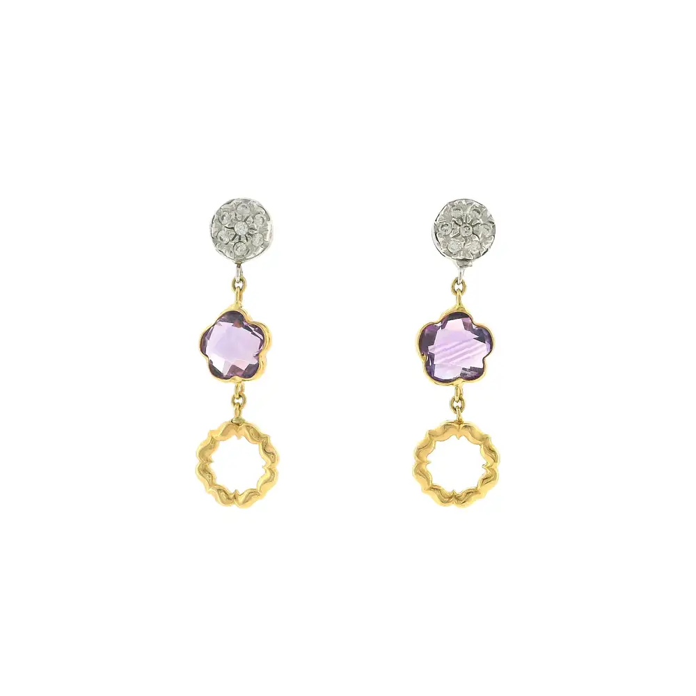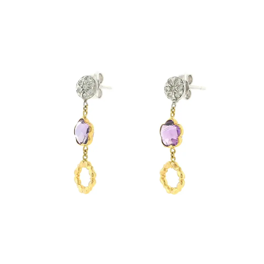 Luxury gold earrings with amethyst and delicate zircons