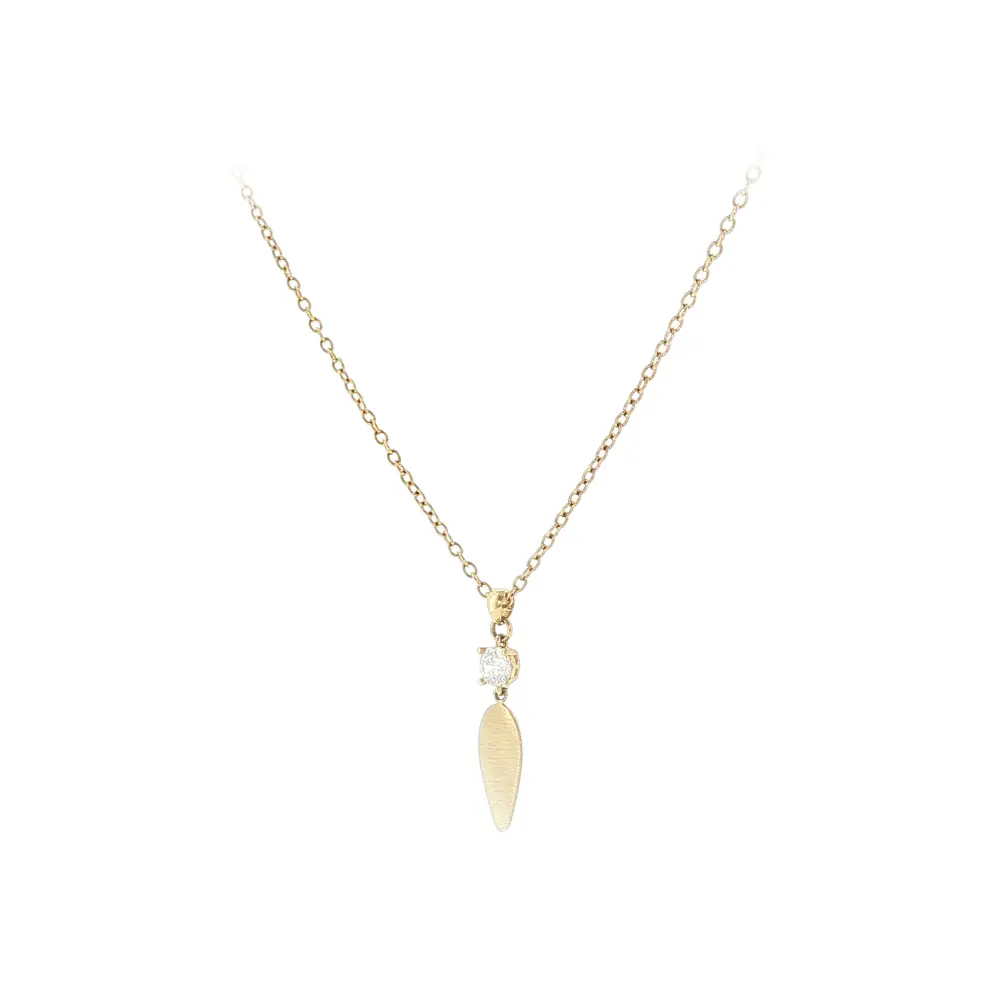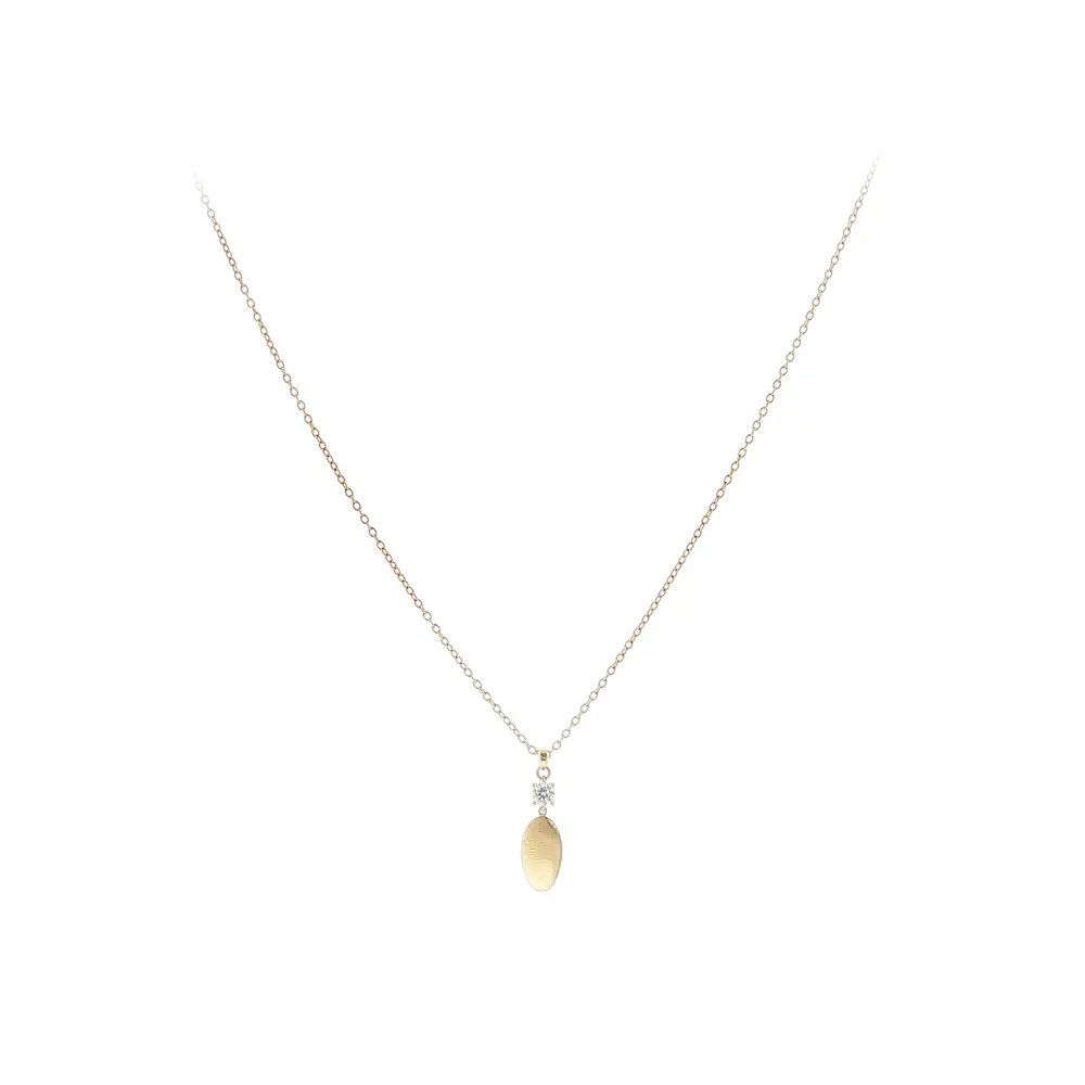 The elegant gold necklace with a sparkling zircon stands out with its delicate and timeless design. The precisely cut zircon adds brilliant shine and creates a luxurious look that complements both everyday outfits and special occasions.