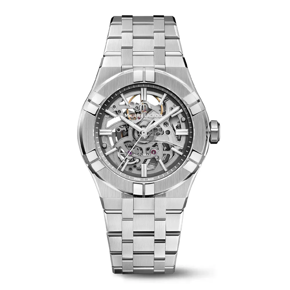 Aikon is Maurice Lacroix's flagship collection, embodying modern sporty elegance with a distinctive visual identity. It is inspired by the iconic Calypso model from the 1990s, but reimagined in a contemporary form with an emphasis on sharp lines, architectural design and an integrated bracelet - one of the collection's main features.