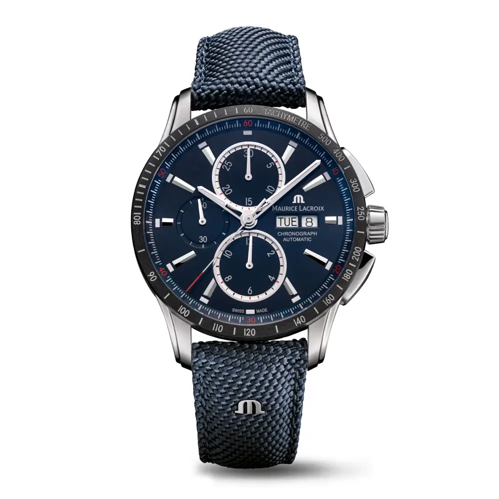 The sandblasted dark blue dial with contrasting rhodium-plated subdials and luminescent hands and indexes ensures excellent legibility in all lighting conditions. Inside beats the automatic calibre ML112, operating at 28,800 vibrations per hour with a 48-hour power reserve, providing accurate timekeeping along with chronograph and date functions.
