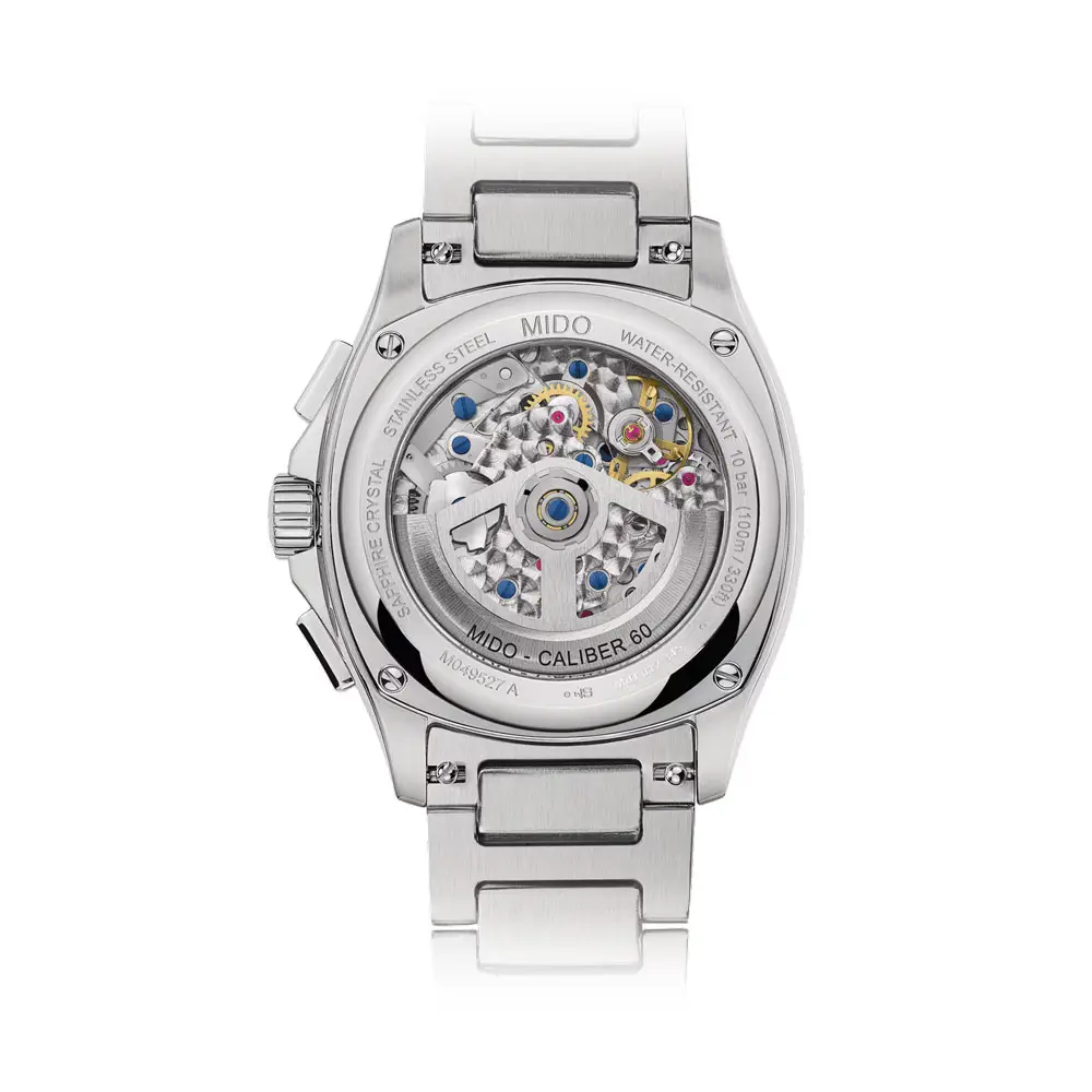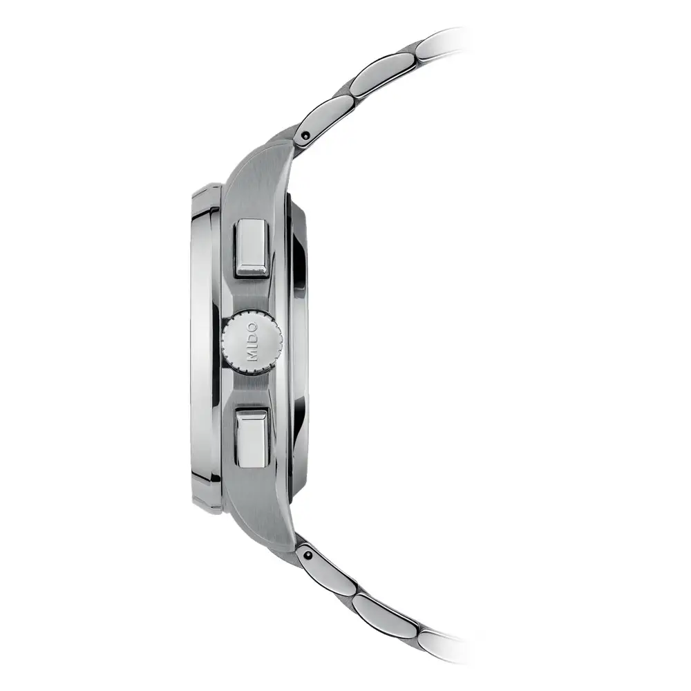 Inside, the automatic Caliber 60 works with an innovative Nivachron™ magnetism-resistant spring and a power reserve of up to 60 hours. The watch offers chronograph, small seconds and date display functions, while the precision operation and Swiss craftsmanship reflect Mido's watchmaking expertise.