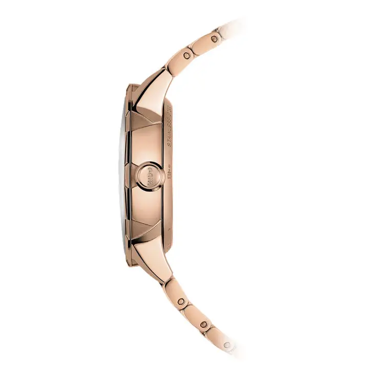 The Mido Rainflower is the embodiment of feminine elegance and delicacy, inspired by natural shapes and details. Its round case with a diameter of 34 mm is made of high-quality stainless steel with rose gold PVD coating, giving the model a sophisticated and modern look. The same bicolor style is reflected in the bezel and the elegant stainless steel bracelet with rose gold accents, finished with a comfortable folding clasp.