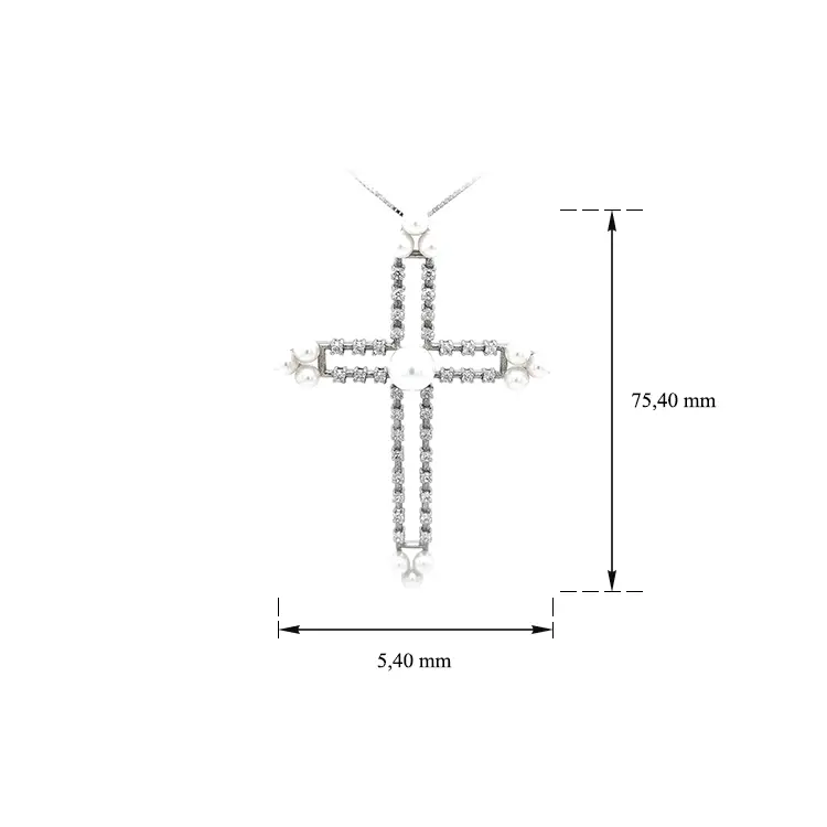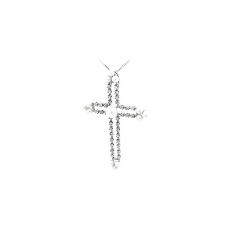 Pendant Cross with Pearl and White Gold Zircons