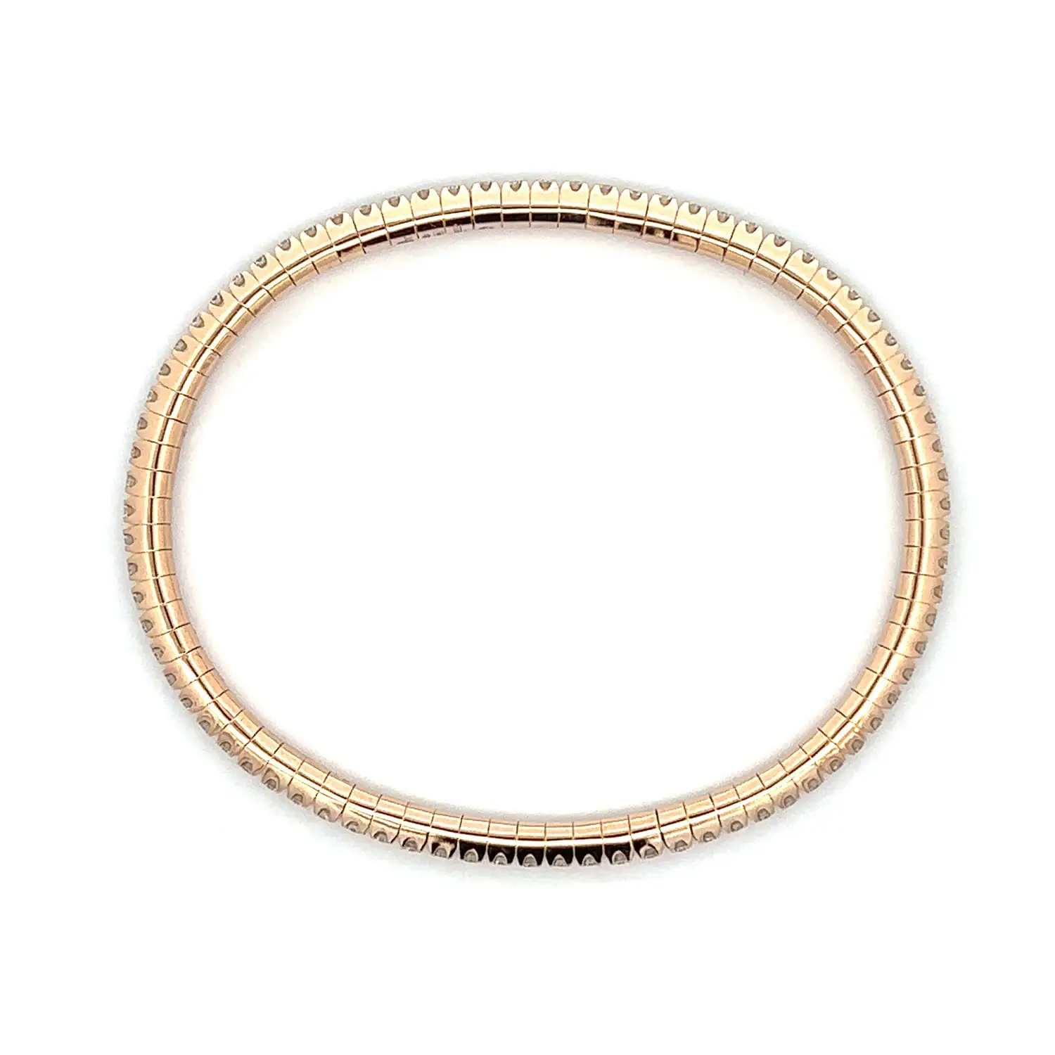 Each diamond is expertly set in warm rose gold, enhancing its sparkle while adding a subtle, feminine glow. Thanks to its flexible construction, the bracelet fits comfortably on the wrist, making it perfect for both daily wear and special occasions.