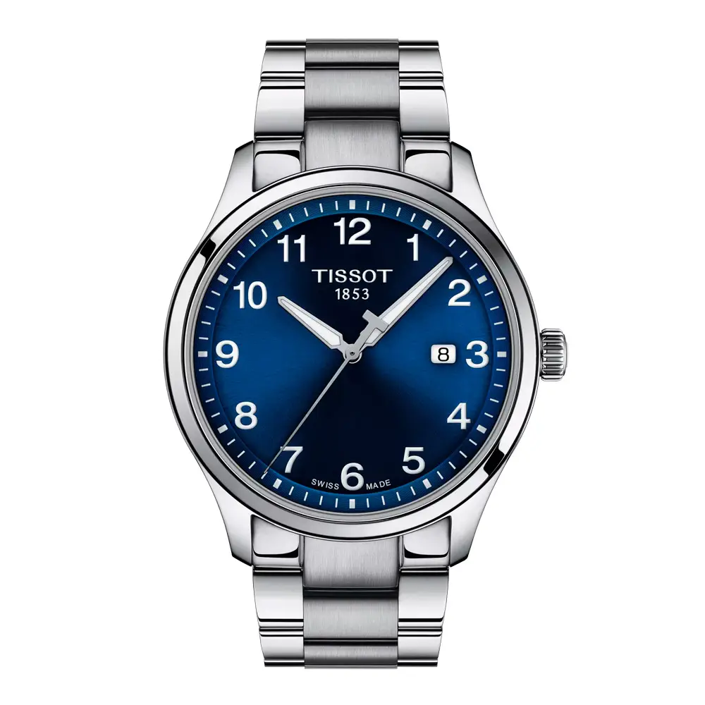Tissot Gent XL Classic T116.410.11.047.00 combines sporty elegance, modern design, and Swiss precision. Its 42 mm stainless-steel case is paired with a dark blue dial featuring polished indexes, contrasting hands, and a date display at 3 o’clock, creating a refined and versatile appearance.