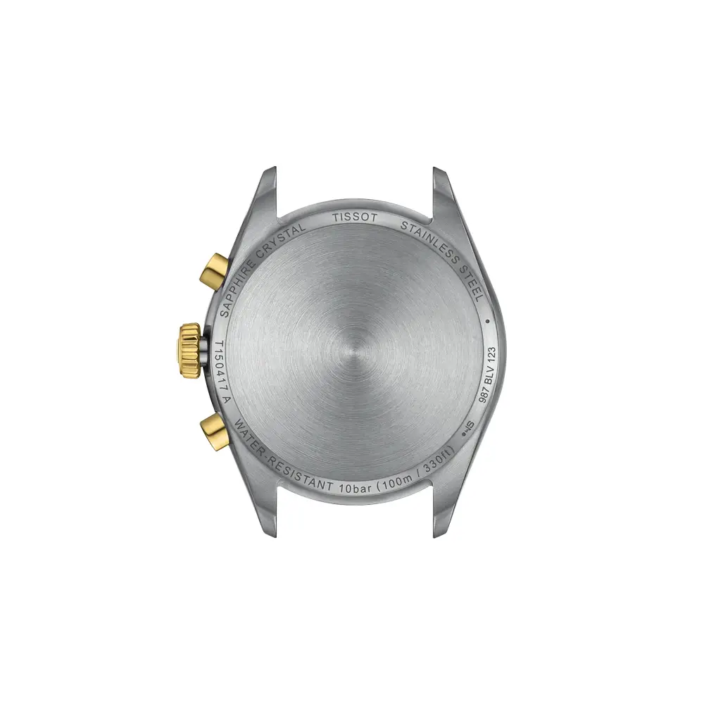 The Tissot PR 100 Chronograph (T150.417.22.031.00) offers a refined blend of classic styling and modern functionality. Its 40 mm 316L stainless-steel case with silver-and-gold bicolor PVD finish creates a luxurious look suitable for everyday wear as well as formal occasions. The silver dial with contrasting gold details is protected by scratch-resistant sapphire crystal, ensuring long-lasting clarity and excellent readability. Detailed product description