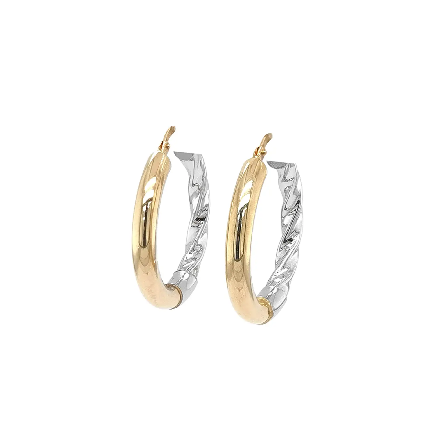 Two-Tone Gold Hoop Earrings with Polished Front and Twisted Back Design