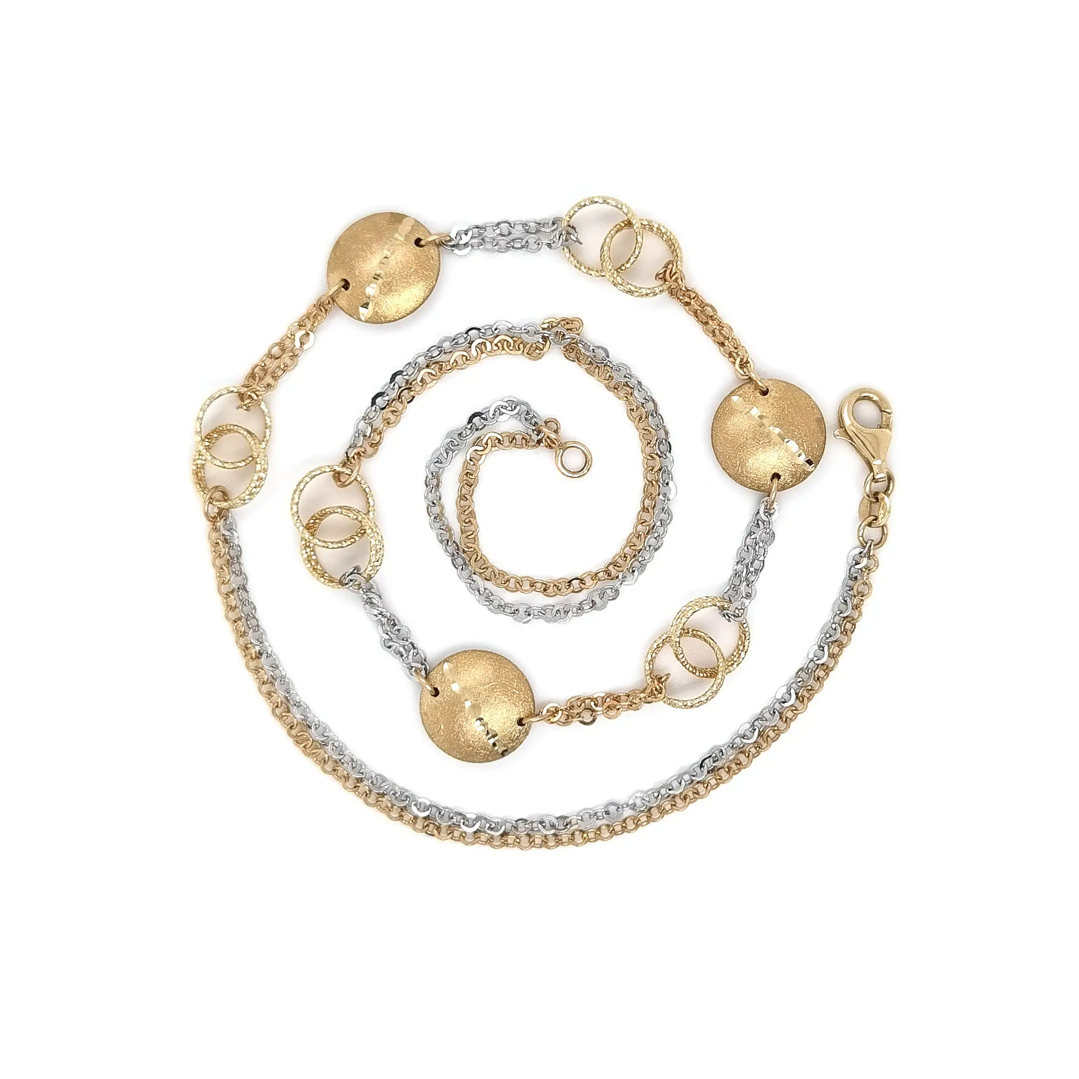 Exkluzivní dámský zlatý náhrdelník s kruhovými motivy