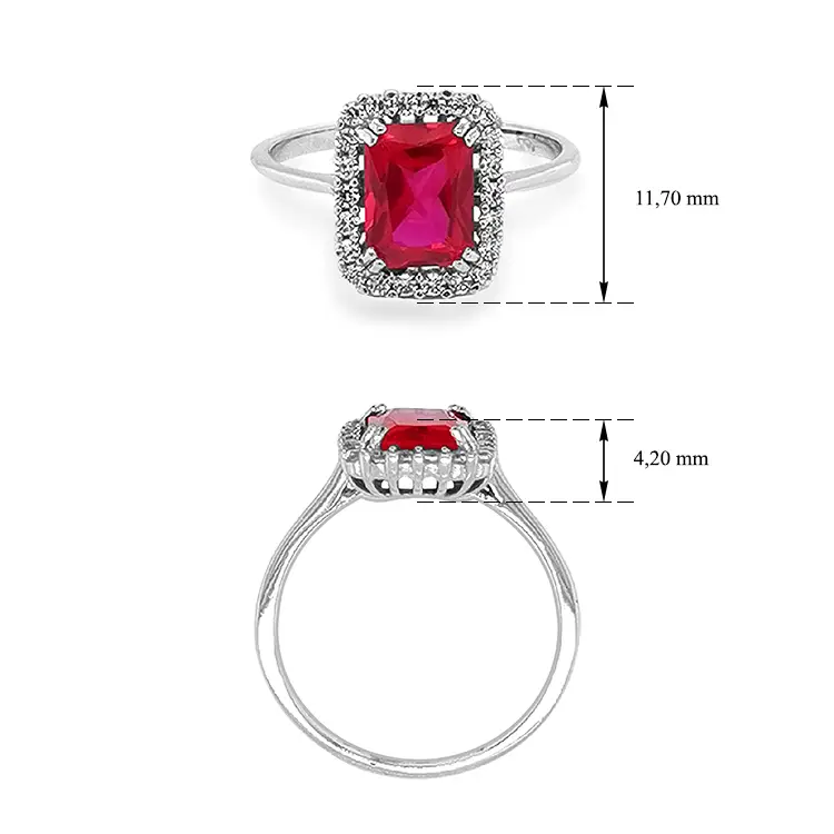 Exkluzivní prsten z bílého zlata s rubínem a zirkony