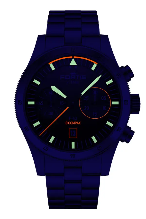 Fortis Flieger F-43 Bicompax Original on Block Bracelet F4240004