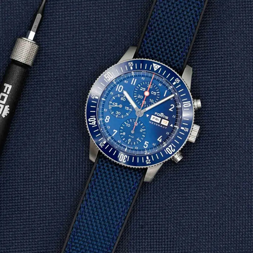 Fortis Novonaut N-42 Cobalt Blue on Hybrid Strap F2040013