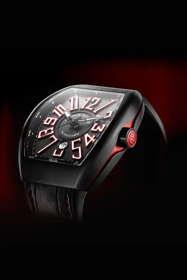Vanguard je moderní a dynamická kolekce značky Franck Muller, která kombinuje sportovní charakter s avantgardním designem. Typická je pro ni výrazná tonneau (soudkovitá) silueta, plynulé linie a robustní pouzdro, které působí masivně, ale zároveň elegantně a ergonomicky.
