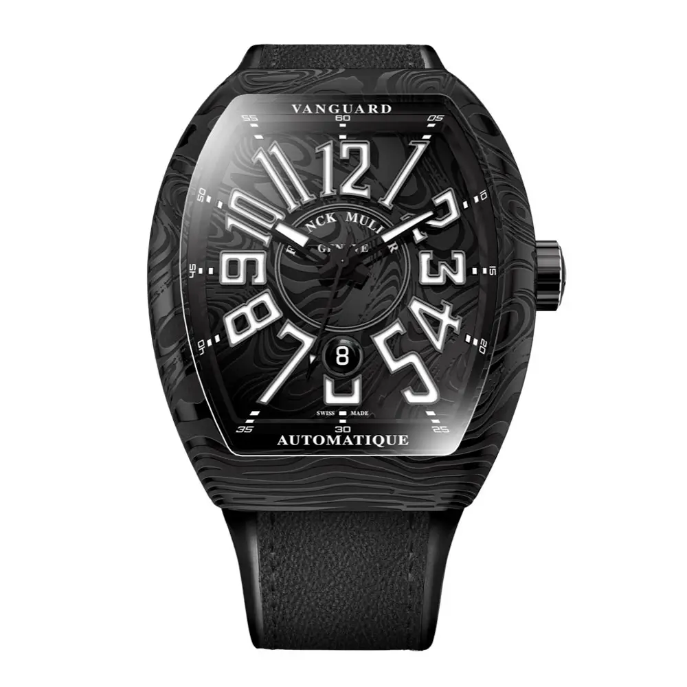 Vanguard je moderní a dynamická kolekce značky Franck Muller, která kombinuje sportovní charakter s avantgardním designem. Typická je pro ni výrazná tonneau (soudkovitá) silueta, plynulé linie a robustní pouzdro, které působí masivně, ale zároveň elegantně a ergonomicky.