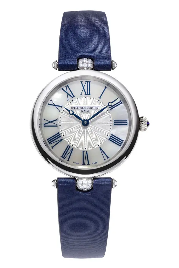 Estetiku dokonale doplňuje modrý saténový pásek s trnovou sponou, který dodává hodinkám noblesní a jemně luxusní výraz. Tento model je ideální volbou pro ženy, které vyhledávají klasický styl, smysl pro detail a švýcarskou kvalitu v moderním provedení. Každý prvek je promyšlený, aby odrážel vkus a osobitost nositelky.