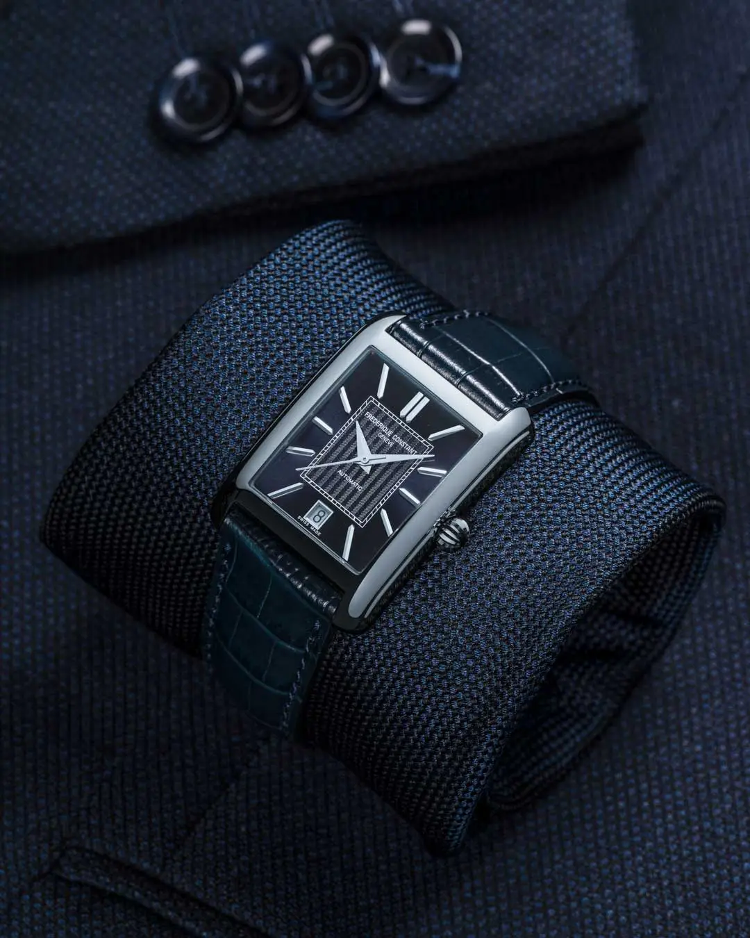 Hodinky Frederique Constant jsou elegantním a precizním doplňkem, který vyniká svým luxusním zpracováním a sofistikovaným designem. Mají obdélníkový tvar pouzdra, který jim dodává jedinečný a moderní vzhled. Pouzdro je vyrobeno z kvalitní oceli, což zajišťuje dlouhou životnost a odolnost hodinek.