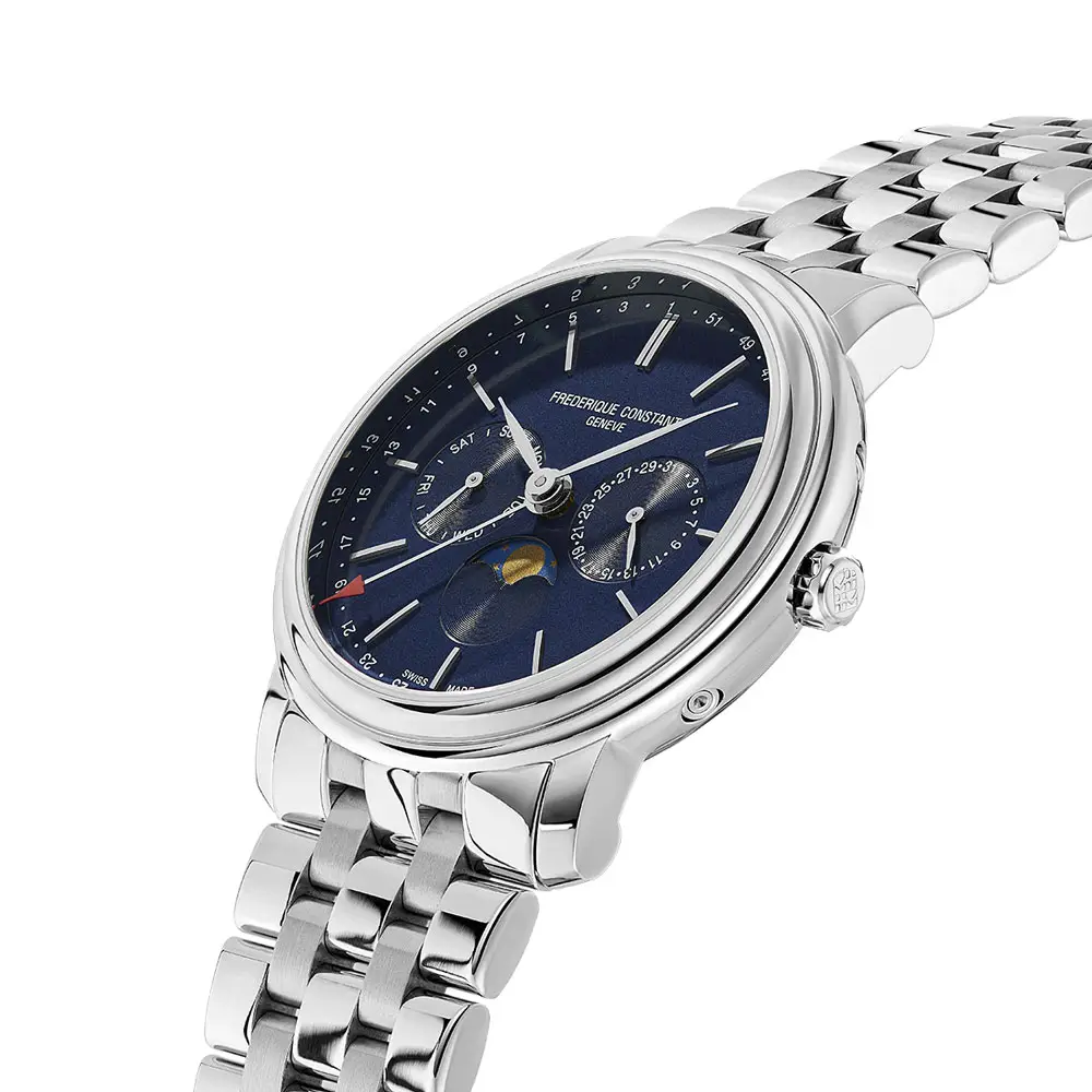 Uvnitř hodinek pracuje švýcarský quartzový strojek FC-270, známý svou spolehlivostí, přesností a bezstarostným provozem. Ocelový náramek s bezpečnou skládací sponou zajišťuje komfort při nošení, zatímco vodotěsnost 6 ATM umožňuje běžné každodenní používání. Model FC-270N4P6B je ideální volbou pro muže, kteří hledají klasické hodinky s vysokou funkční hodnotou a kultivovaným vzhledem.
