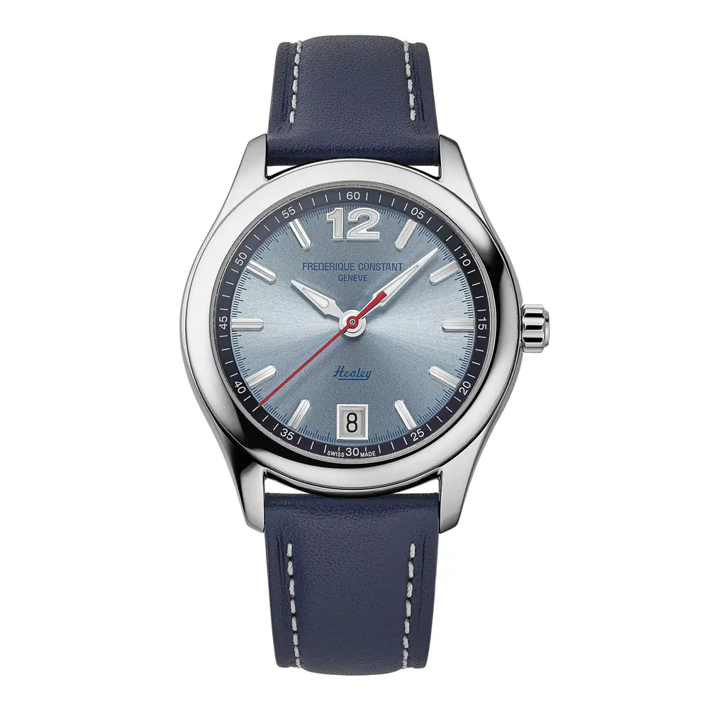 Hodinky Frederique Constant Vintage Rally Healey Automatic Limited Edition spojují nadčasovou eleganci s poetikou klasických automobilů a automobilového sportu. Pouzdro z nerezové oceli o průměru 36 mm a modrý ciferník s efektem slunečního odlesku evokují legendární odstín vozu Austin-Healey 3000 MKII, zatímco červená sekundová ručka jemně akcentuje dynamický charakter modelu. Limitovaná edice pouhých 1 888 kusů podtrhuje sběratelskou hodnotu a výjimečnost každého exempláře.