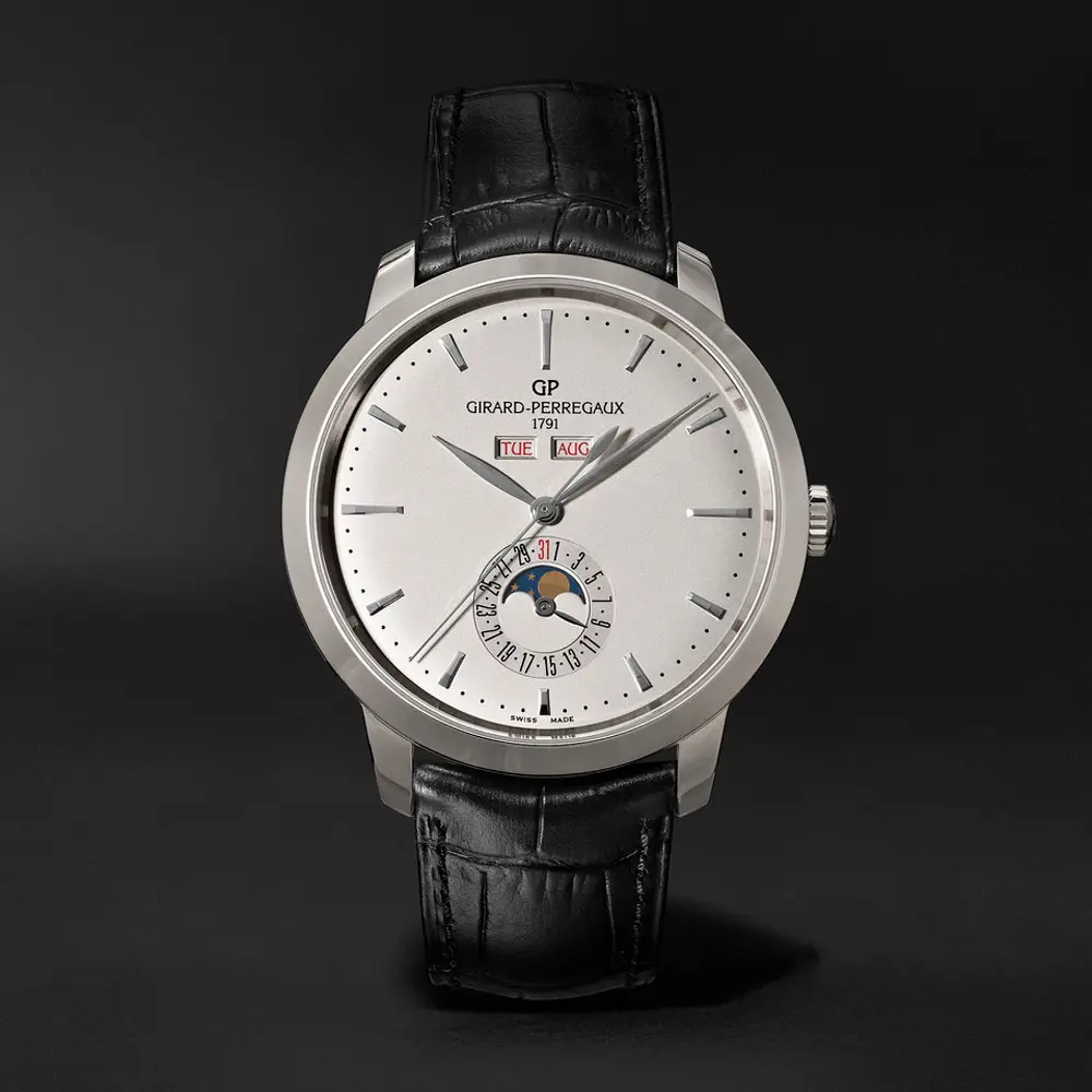 Design modelů je čistý a sofistikovaný – tenké kulaté pouzdro, jemně zakřivené safírové sklíčko, úzké indexy a elegantní ručky vytvářejí vyváženou a kultivovanou estetiku. V srdci hodinek tikají vlastní manufakturní strojky Girard-Perregaux, často s komplikacemi jako datum, fáze měsíce, nebo roční kalendář.