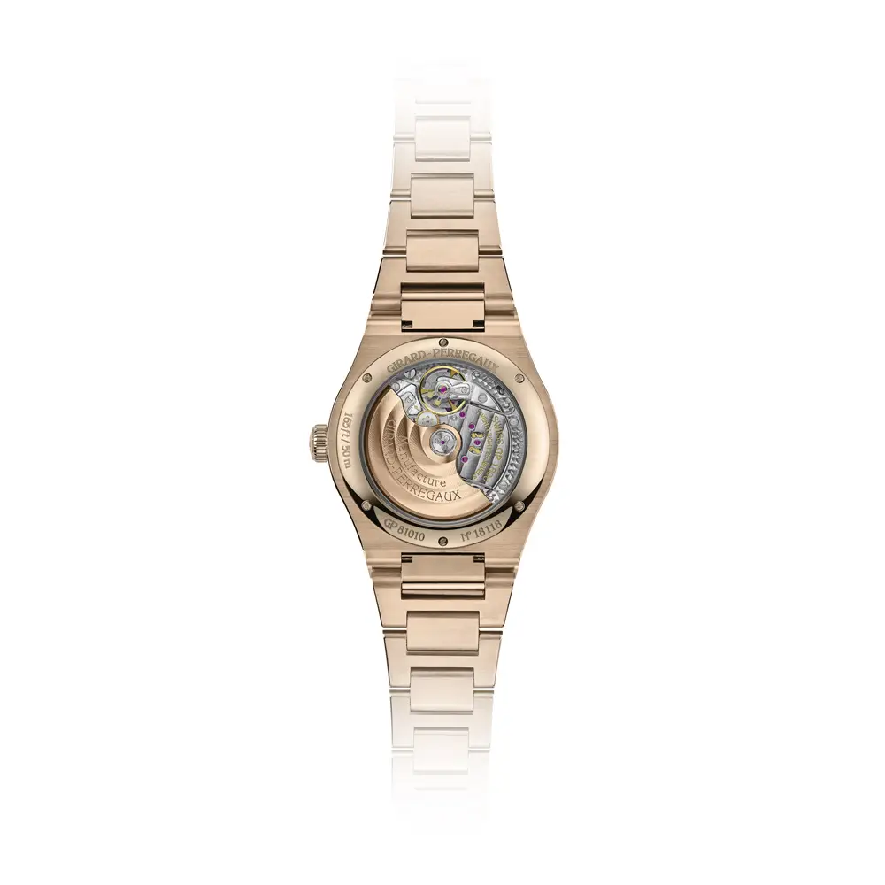 Uvnitř se nachází automatický in-house kalibr GP01800-0008 s rezervou chodu 54 hodin, který je viditelný skrze průhledné safírové dýnko. S vodotěsností 100 metrů spojují hodinky Girard-Perregaux Laureato 42 mm luxus, technickou dokonalost a nadčasový design do jedinečného celku.